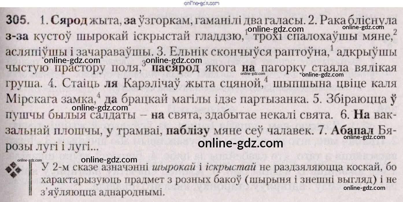 Готовые домашние задания по Белорусскому языку за 7 класс Учебник Валочка, Язерская 2020 - Практыкаванні 305