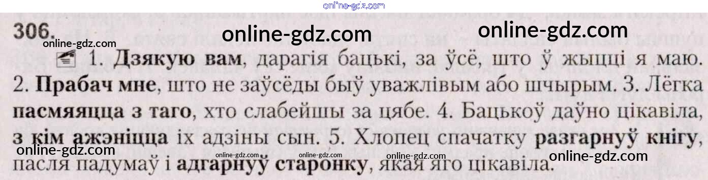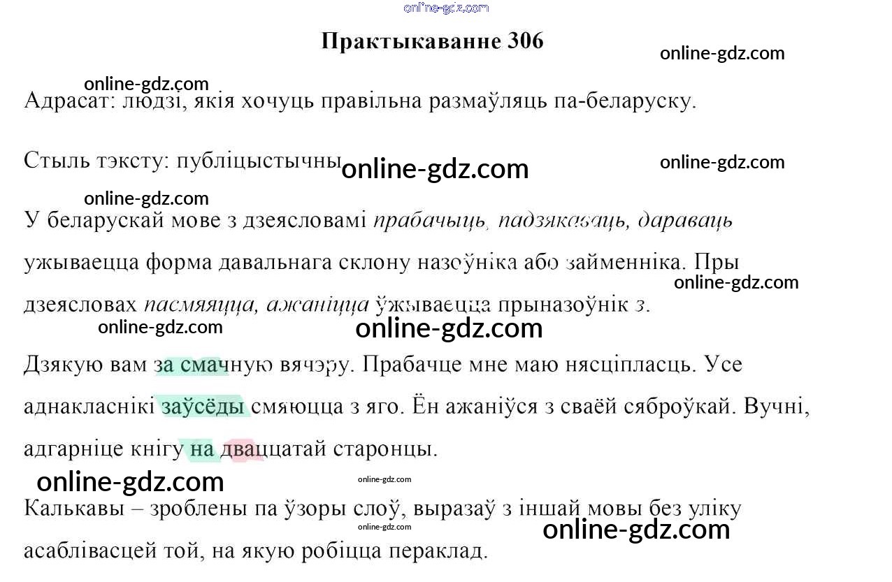 Готовые домашние задания по Белорусскому языку за 7 класс Учебник Валочка, Язерская 2020 - Практыкаванні 306