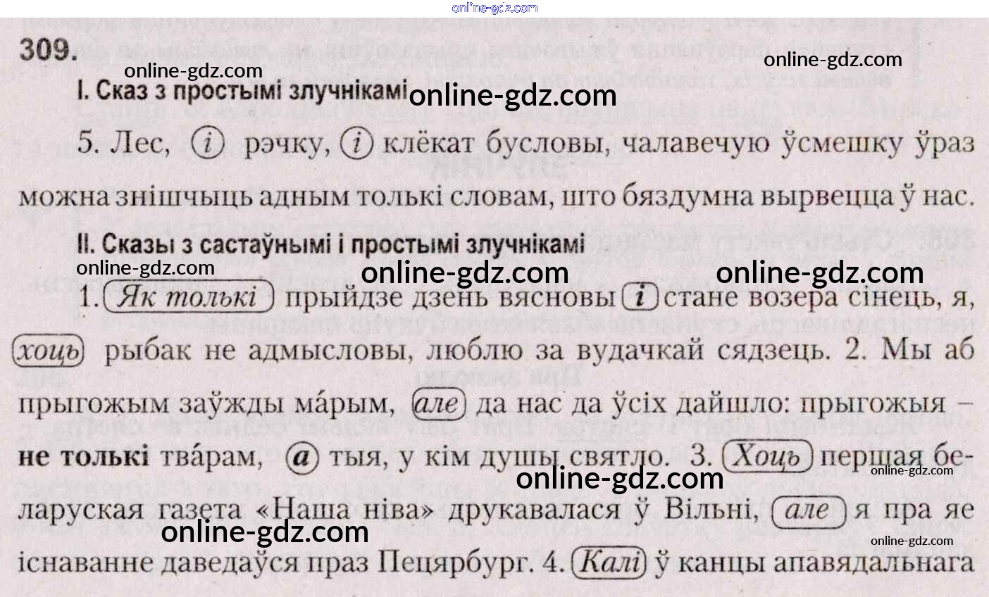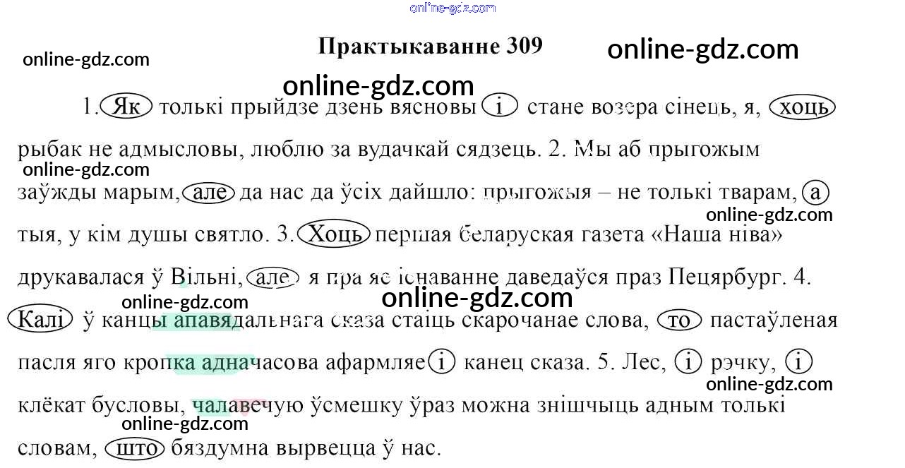 Готовые домашние задания по Белорусскому языку за 7 класс Учебник Валочка, Язерская 2020 - Практыкаванні 309