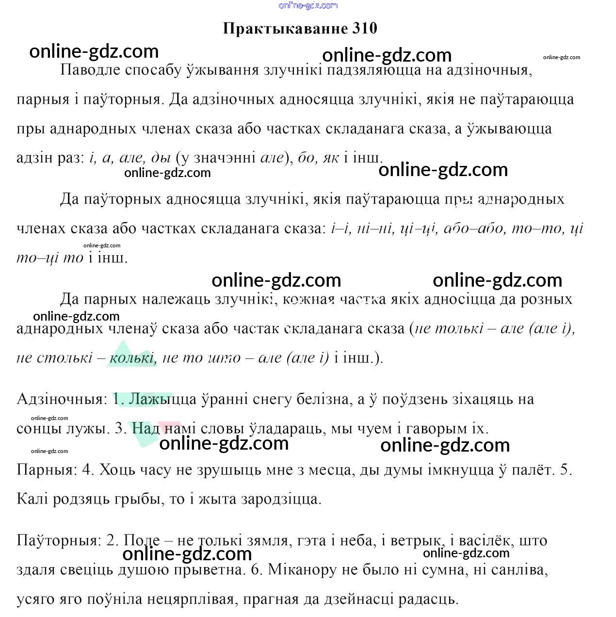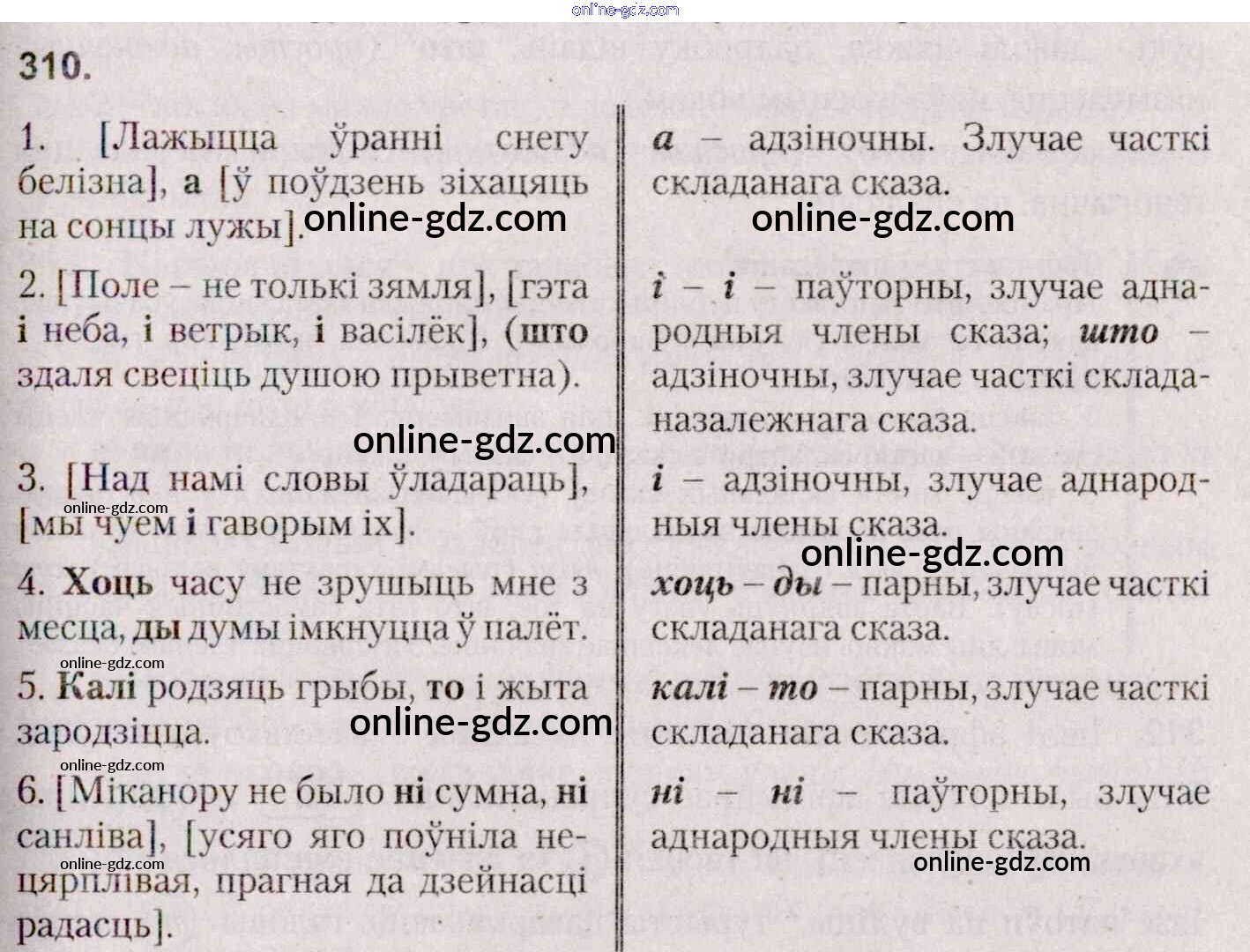 Готовые домашние задания по Белорусскому языку за 7 класс Учебник Валочка, Язерская 2020 - Практыкаванні 310