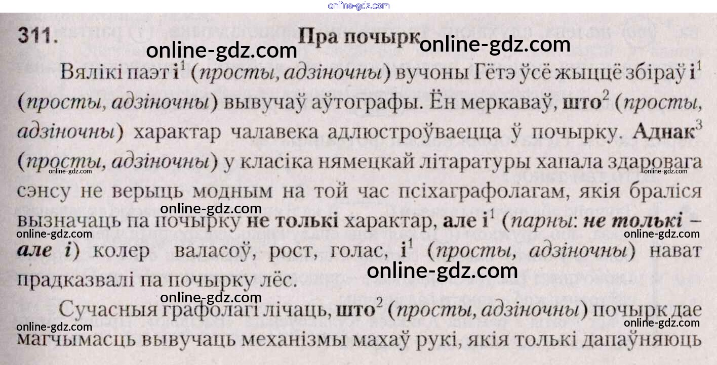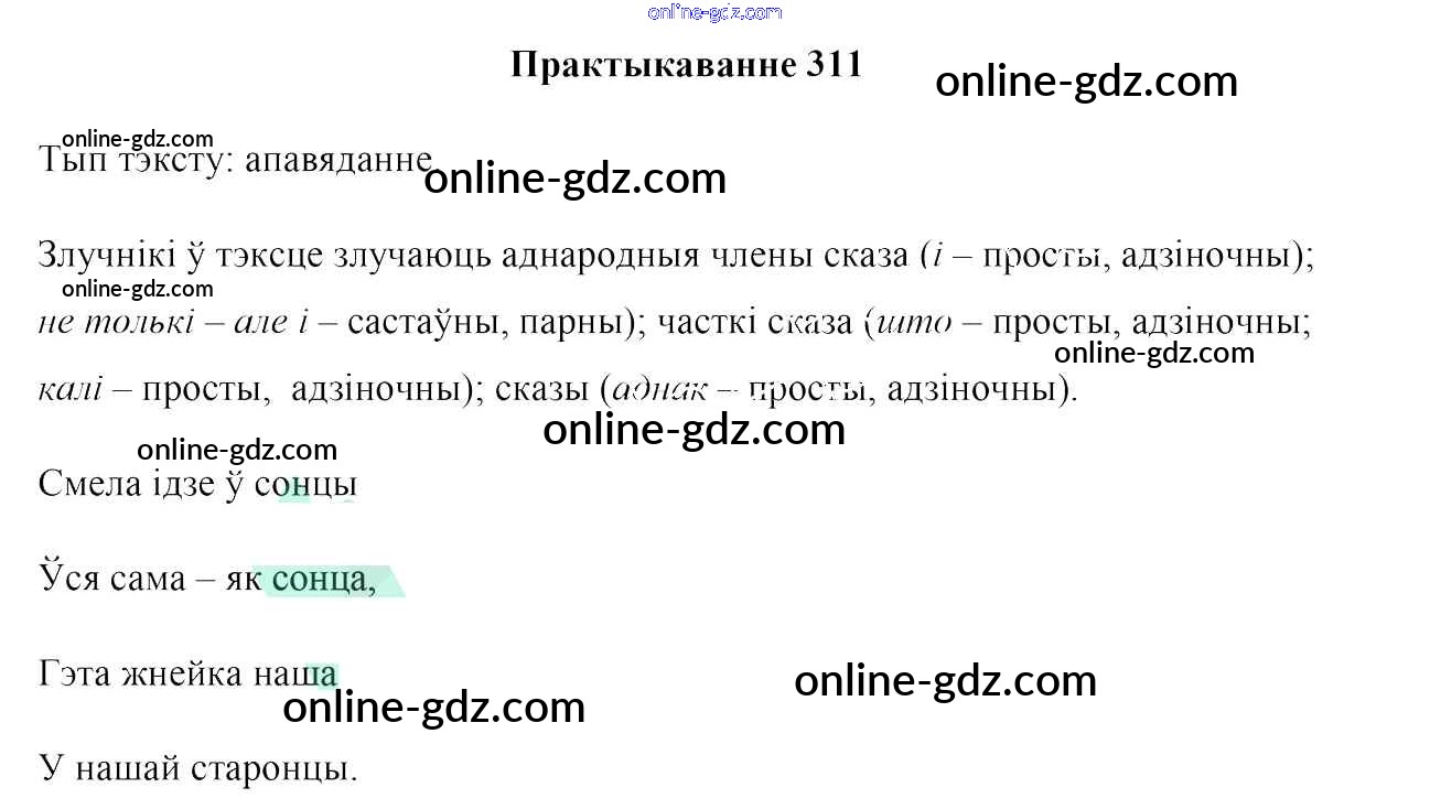 Готовые домашние задания по Белорусскому языку за 7 класс Учебник Валочка, Язерская 2020 - Практыкаванні 311