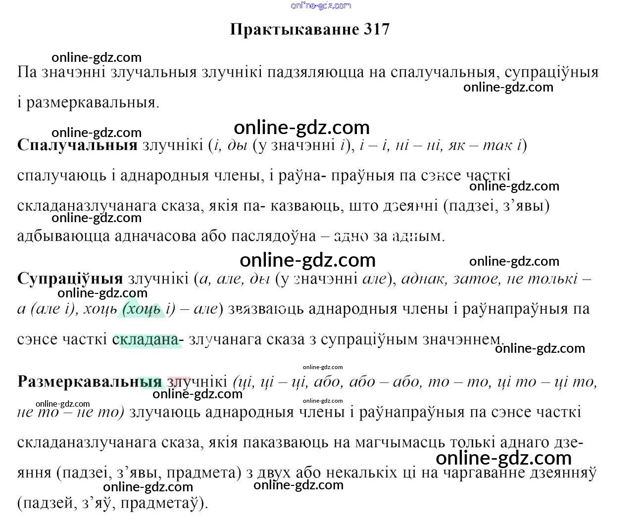 Готовые домашние задания по Белорусскому языку за 7 класс Учебник Валочка, Язерская 2020 - Практыкаванні 317
