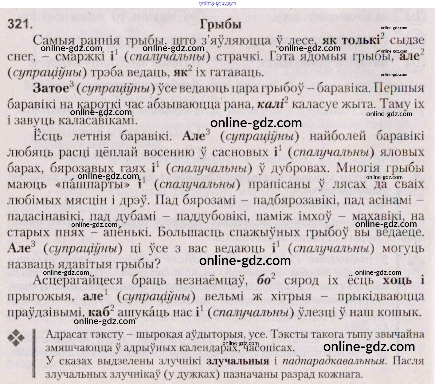 Готовые домашние задания по Белорусскому языку за 7 класс Учебник Валочка, Язерская 2020 - Практыкаванні 321