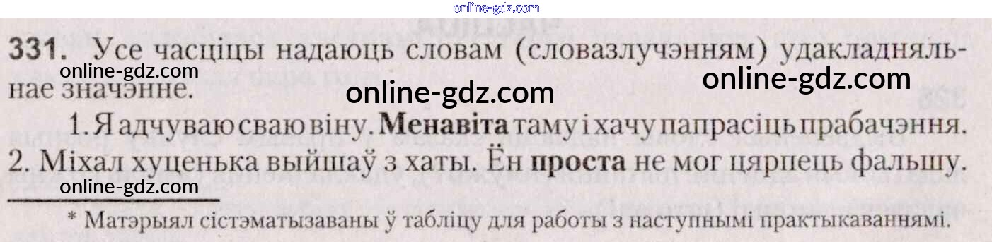 Готовые домашние задания по Белорусскому языку за 7 класс Учебник Валочка, Язерская 2020 - Практыкаванні 331