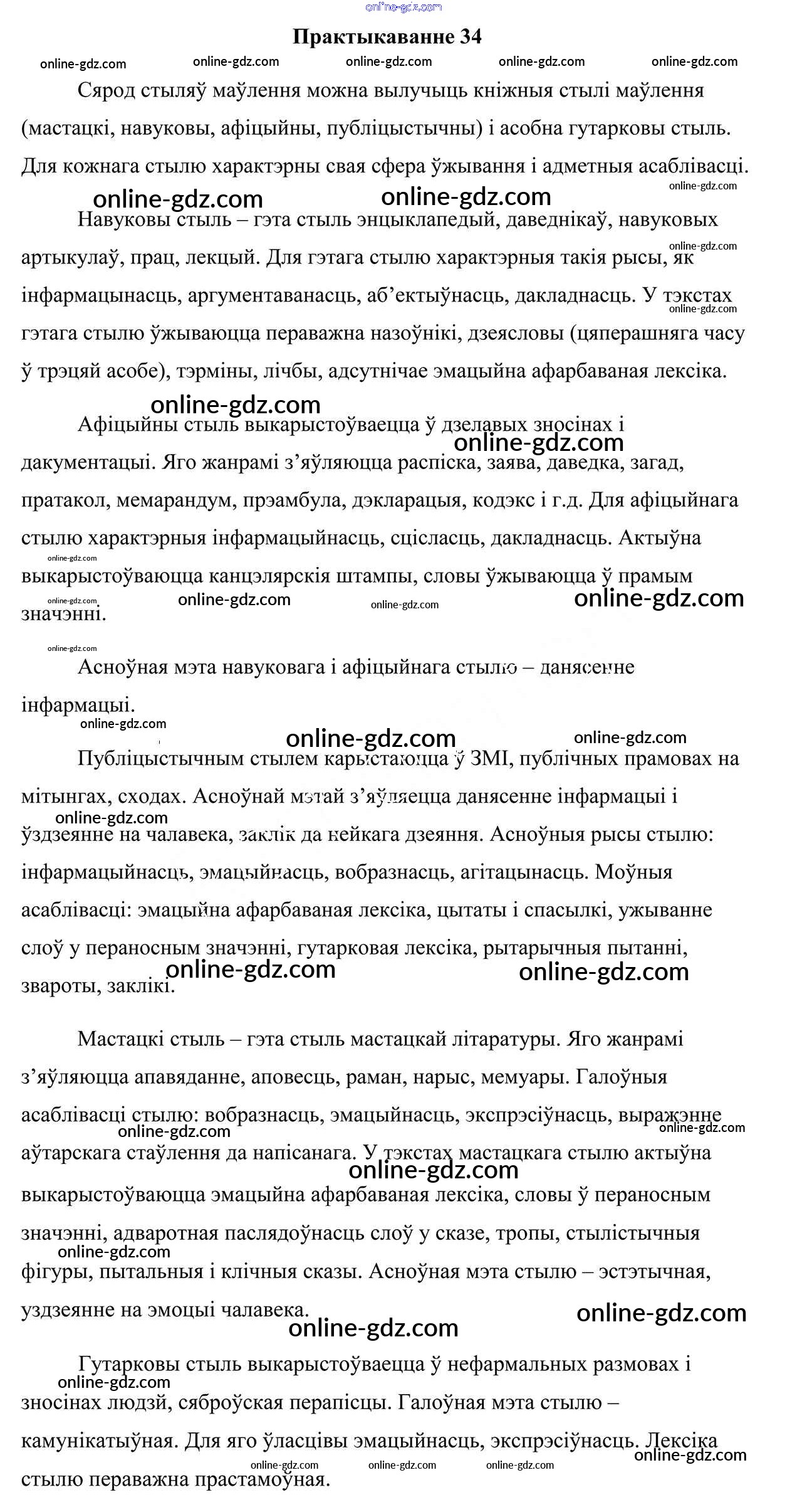 Готовые домашние задания по Белорусскому языку за 7 класс Учебник Валочка, Язерская 2020 - Практыкаванні 34
