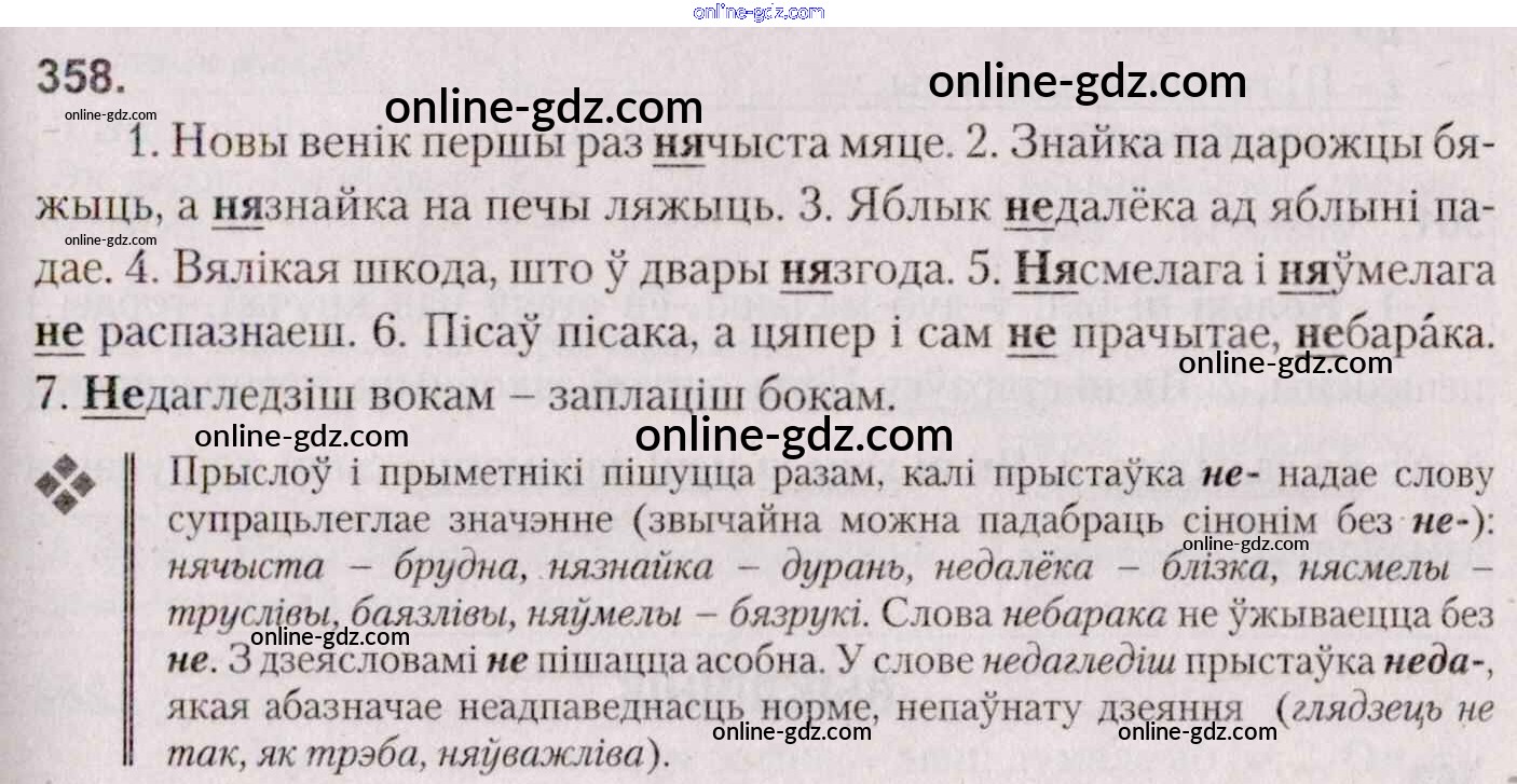 Готовые домашние задания по Белорусскому языку за 7 класс Учебник Валочка, Язерская 2020 - Практыкаванні 358