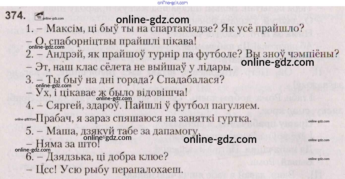 Готовые домашние задания по Белорусскому языку за 7 класс Учебник Валочка, Язерская 2020 - Практыкаванні 374