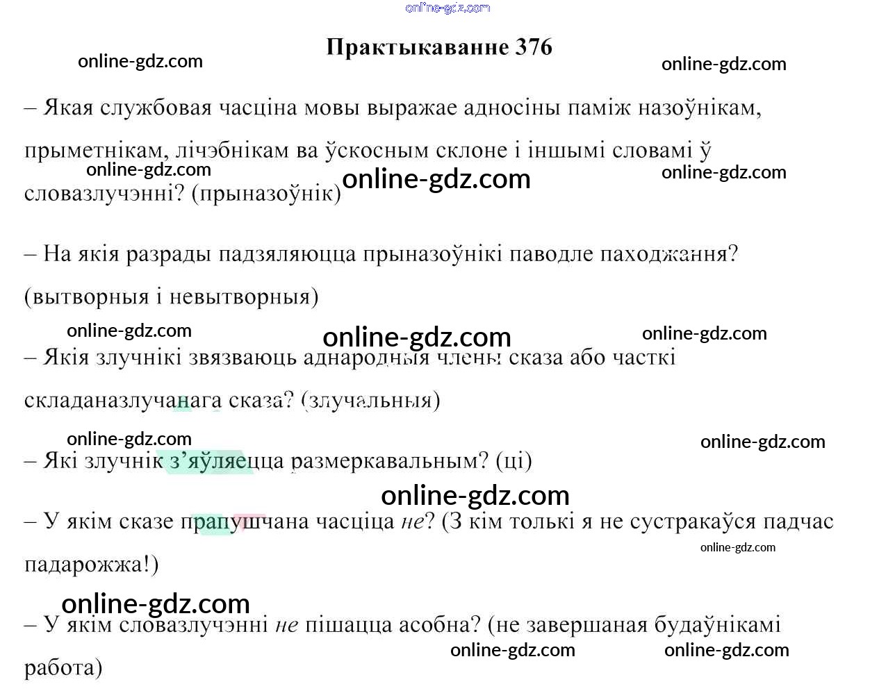 Готовые домашние задания по Белорусскому языку за 7 класс Учебник Валочка, Язерская 2020 - Практыкаванні 376
