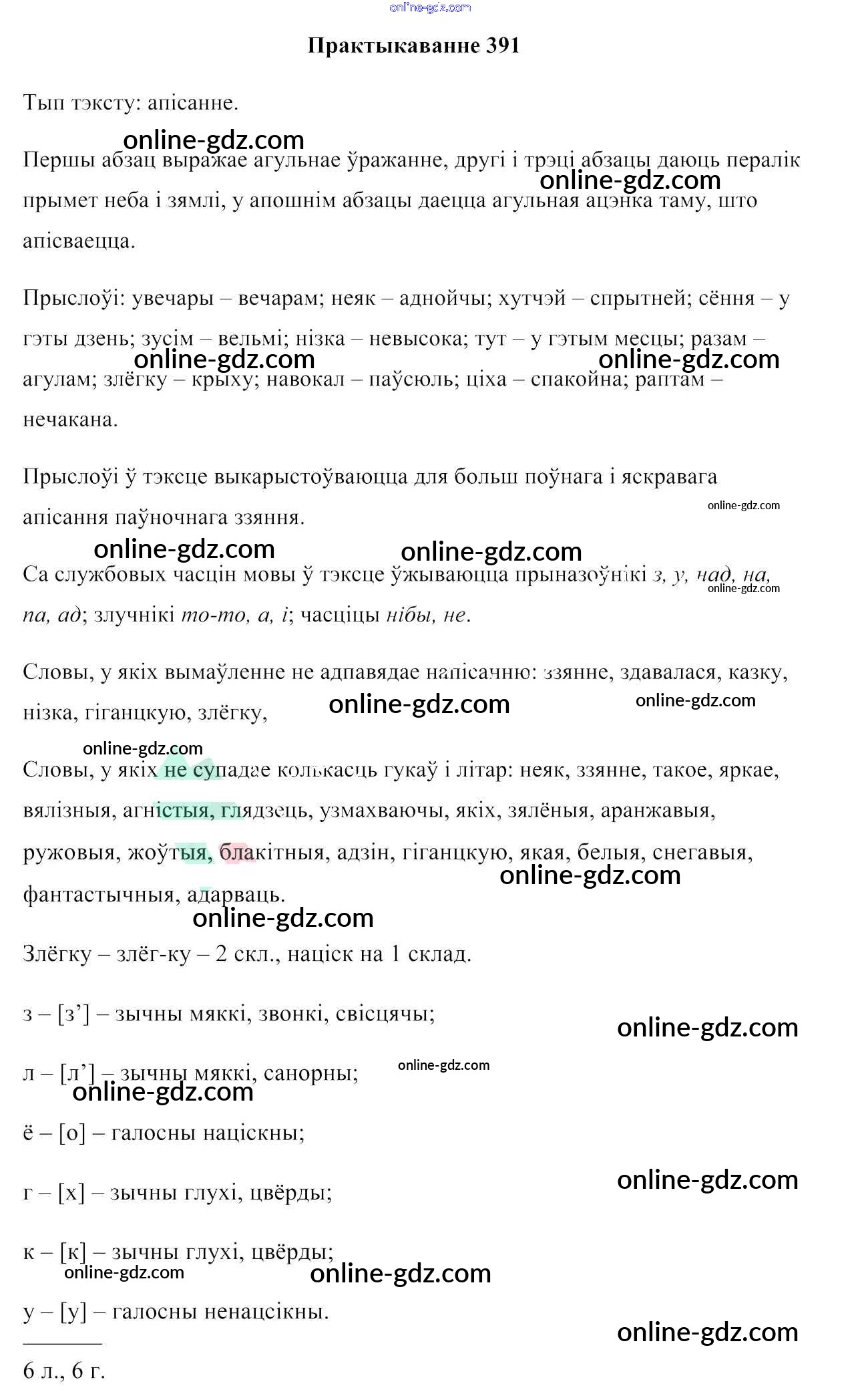 Готовые домашние задания по Белорусскому языку за 7 класс Учебник Валочка, Язерская 2020 - Практыкаванні 391