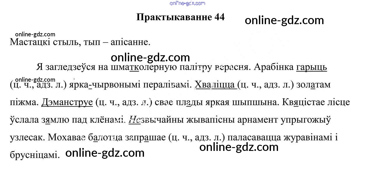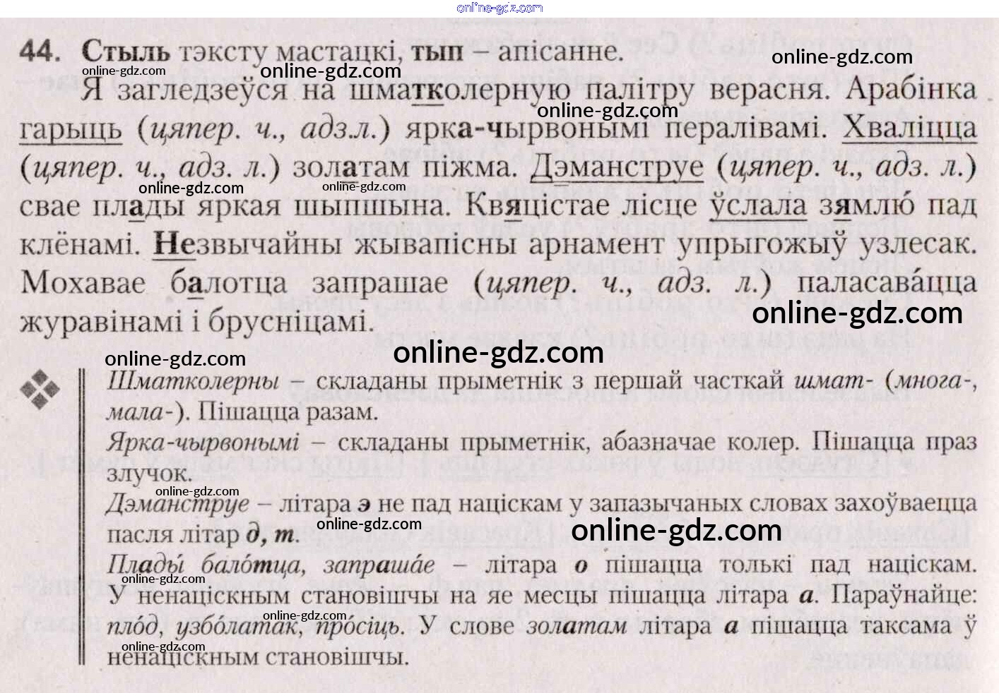 Готовые домашние задания по Белорусскому языку за 7 класс Учебник Валочка, Язерская 2020 - Практыкаванні 44