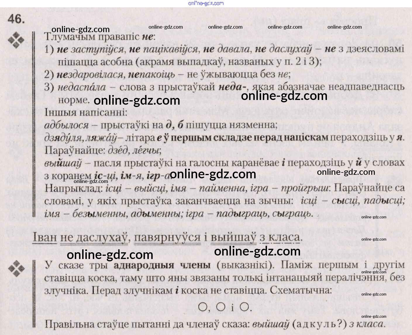 Готовые домашние задания по Белорусскому языку за 7 класс Учебник Валочка, Язерская 2020 - Практыкаванні 46