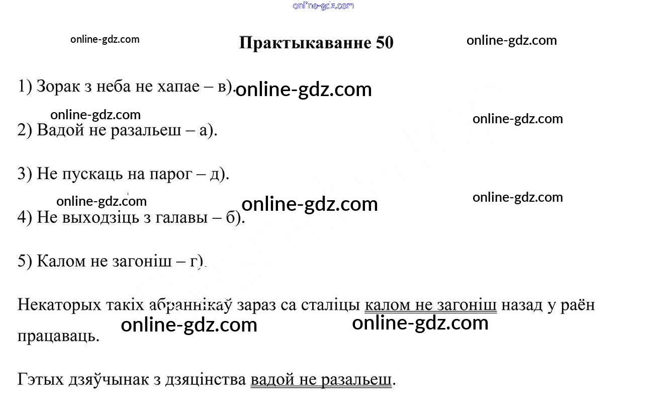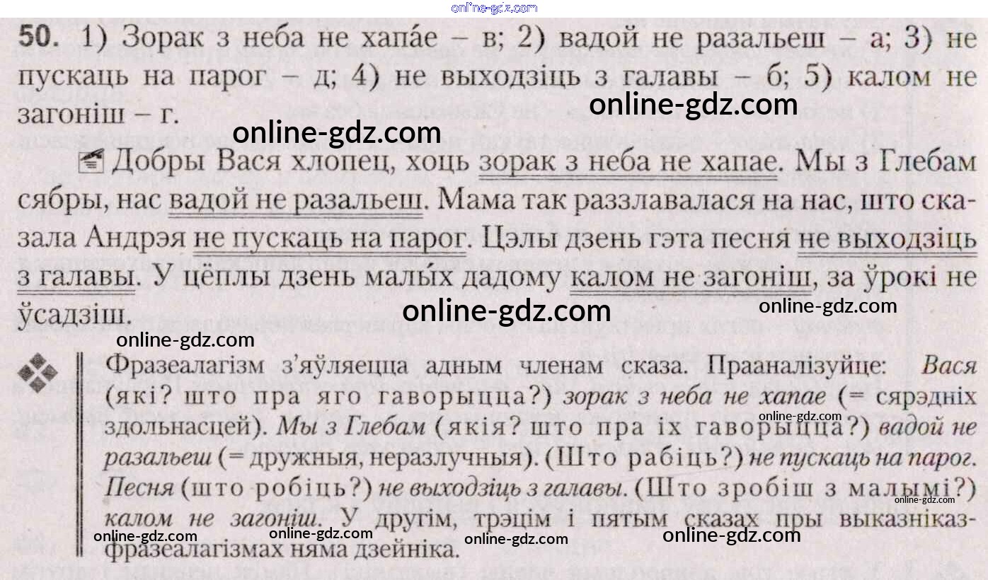 Готовые домашние задания по Белорусскому языку за 7 класс Учебник Валочка, Язерская 2020 - Практыкаванні 50