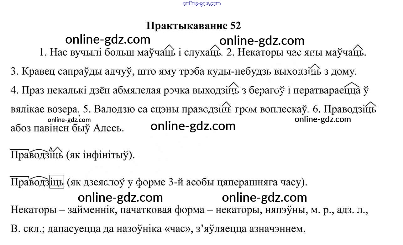 Готовые домашние задания по Белорусскому языку за 7 класс Учебник Валочка, Язерская 2020 - Практыкаванні 52