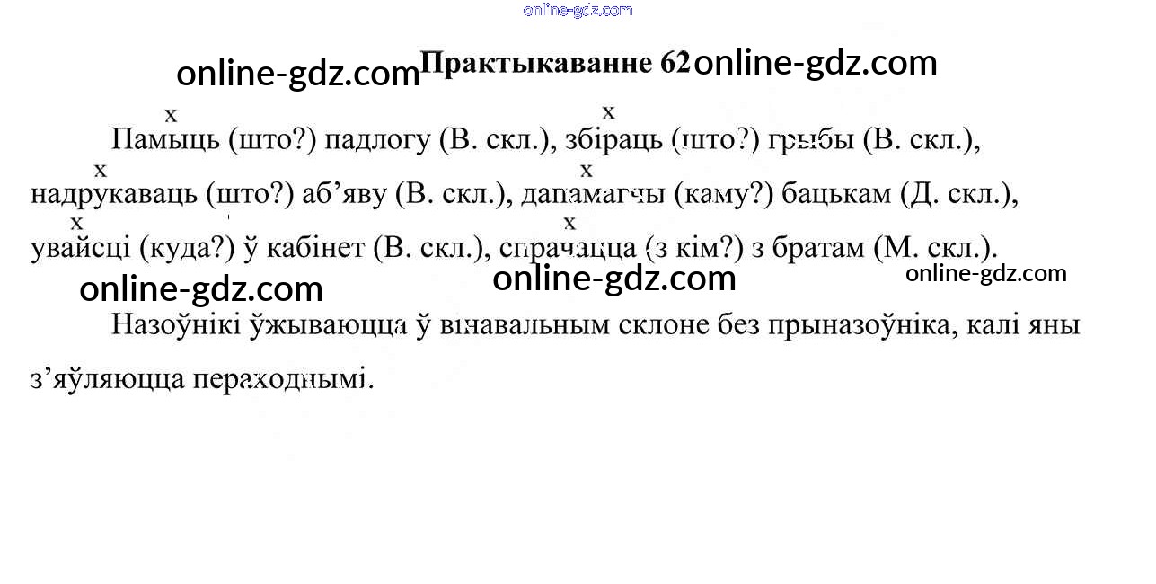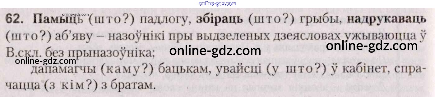 Готовые домашние задания по Белорусскому языку за 7 класс Учебник Валочка, Язерская 2020 - Практыкаванні 62
