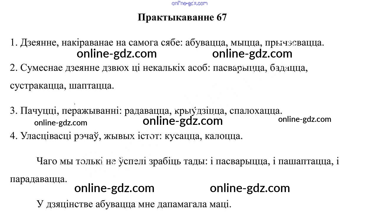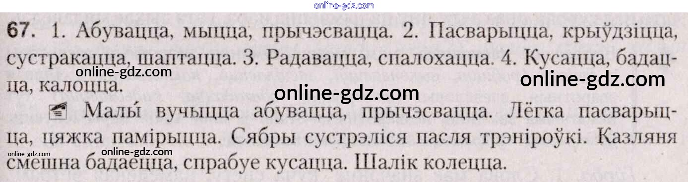 Готовые домашние задания по Белорусскому языку за 7 класс Учебник Валочка, Язерская 2020 - Практыкаванні 67