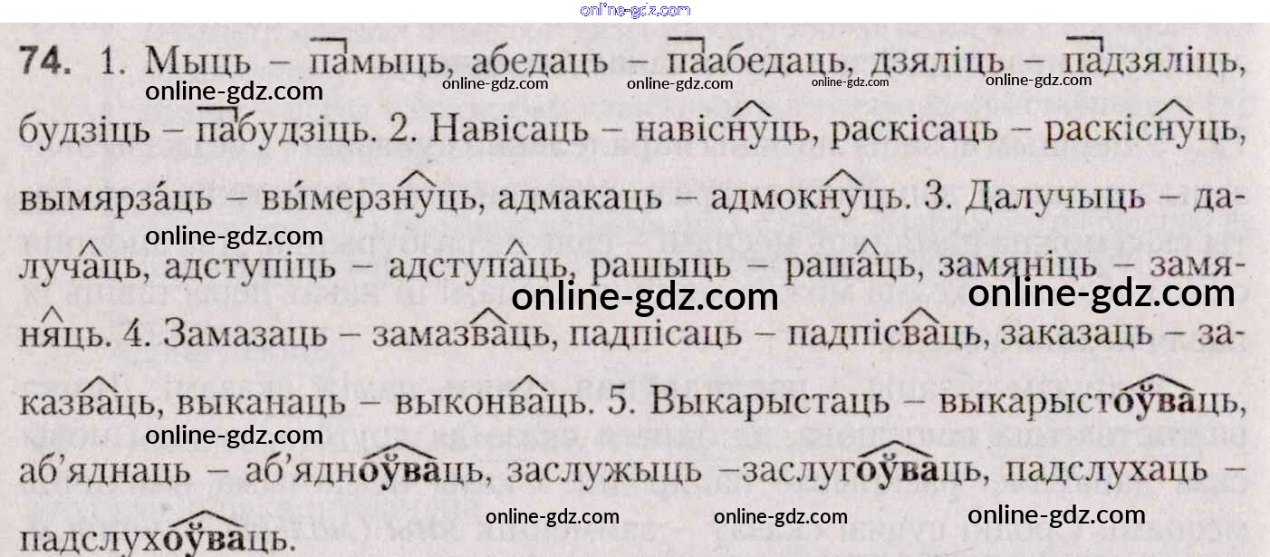 Готовые домашние задания по Белорусскому языку за 7 класс Учебник Валочка, Язерская 2020 - Практыкаванні 74