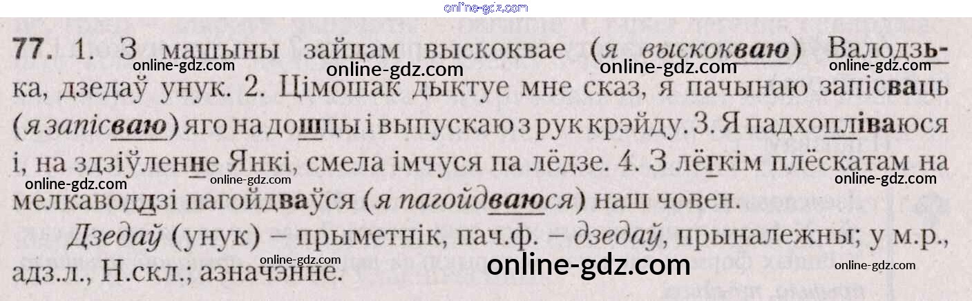 Готовые домашние задания по Белорусскому языку за 7 класс Учебник Валочка, Язерская 2020 - Практыкаванні 77