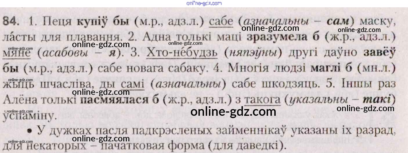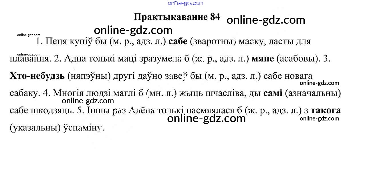 Готовые домашние задания по Белорусскому языку за 7 класс Учебник Валочка, Язерская 2020 - Практыкаванні 84