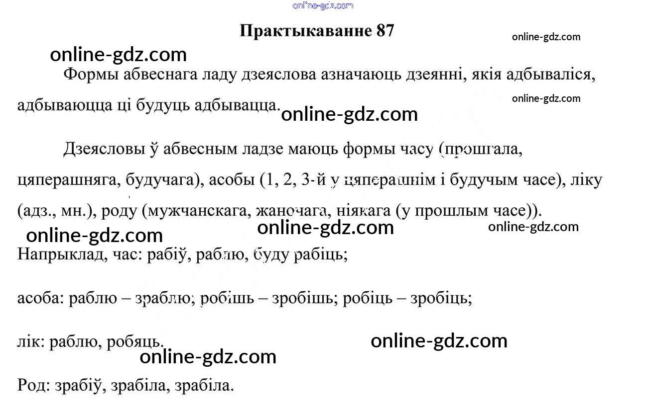 Готовые домашние задания по Белорусскому языку за 7 класс Учебник Валочка, Язерская 2020 - Практыкаванні 87