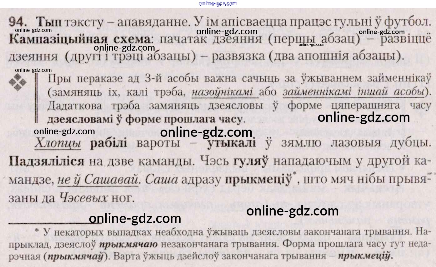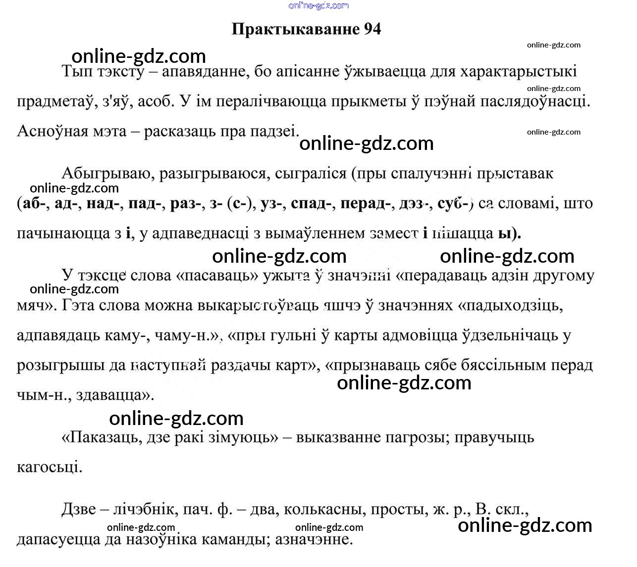 Готовые домашние задания по Белорусскому языку за 7 класс Учебник Валочка, Язерская 2020 - Практыкаванні 94