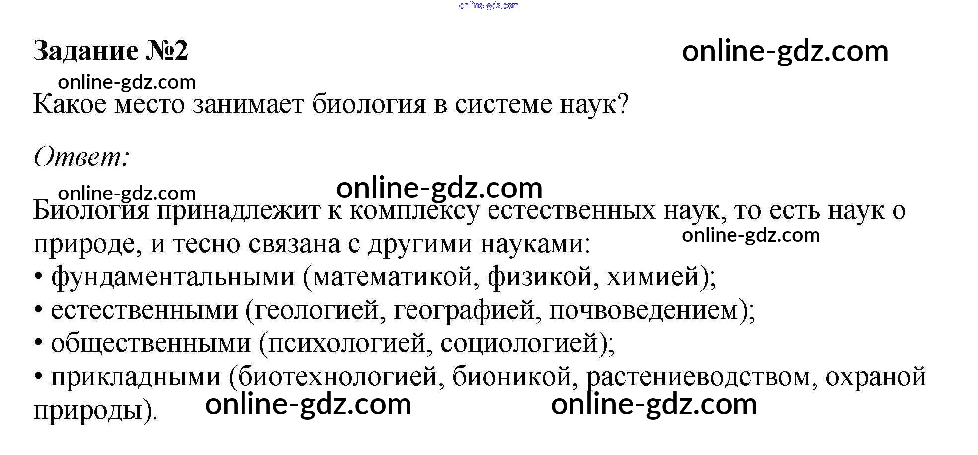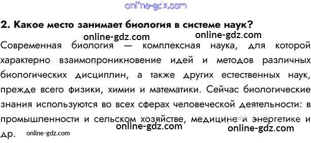 Готовые домашние задания по Биологии за 10 класс Учебник Пасечник, Каменский Линия жизни 2018 - Вспомните §1. Биология в системе наук 2