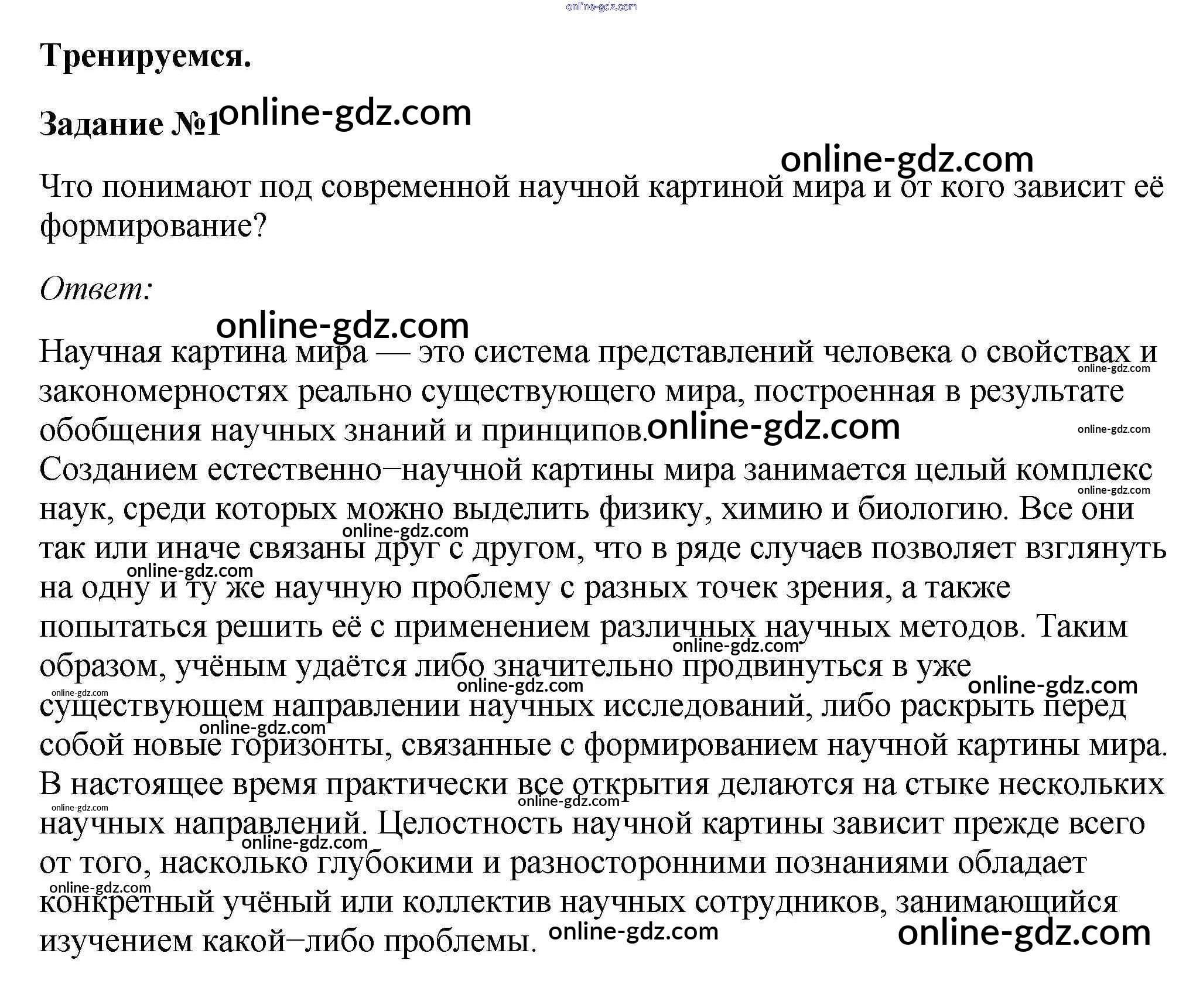Готовые домашние задания по Биологии за 10 класс Учебник Пасечник, Каменский Линия жизни 2018 - Тренируемся §1. Биология в системе наук 1