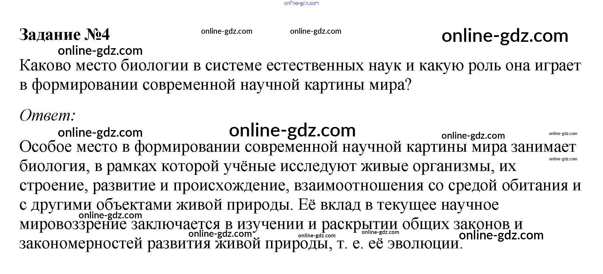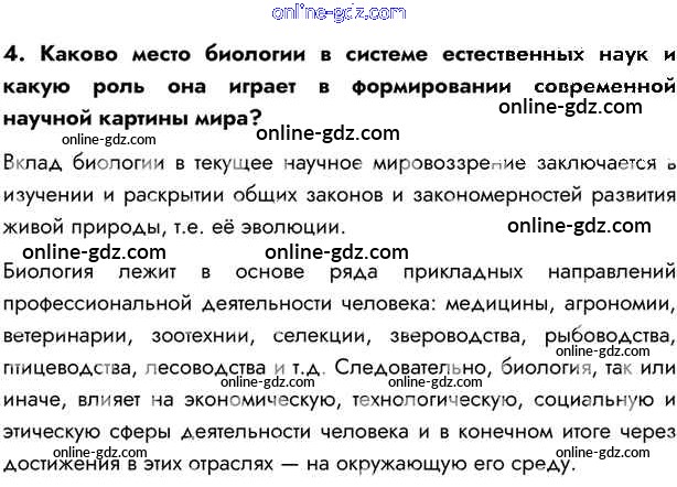 Готовые домашние задания по Биологии за 10 класс Учебник Пасечник, Каменский Линия жизни 2018 - Тренируемся §1. Биология в системе наук 4