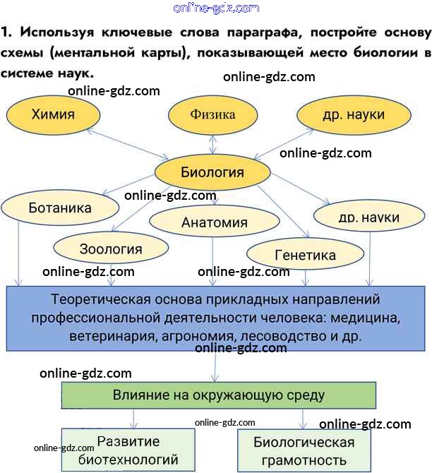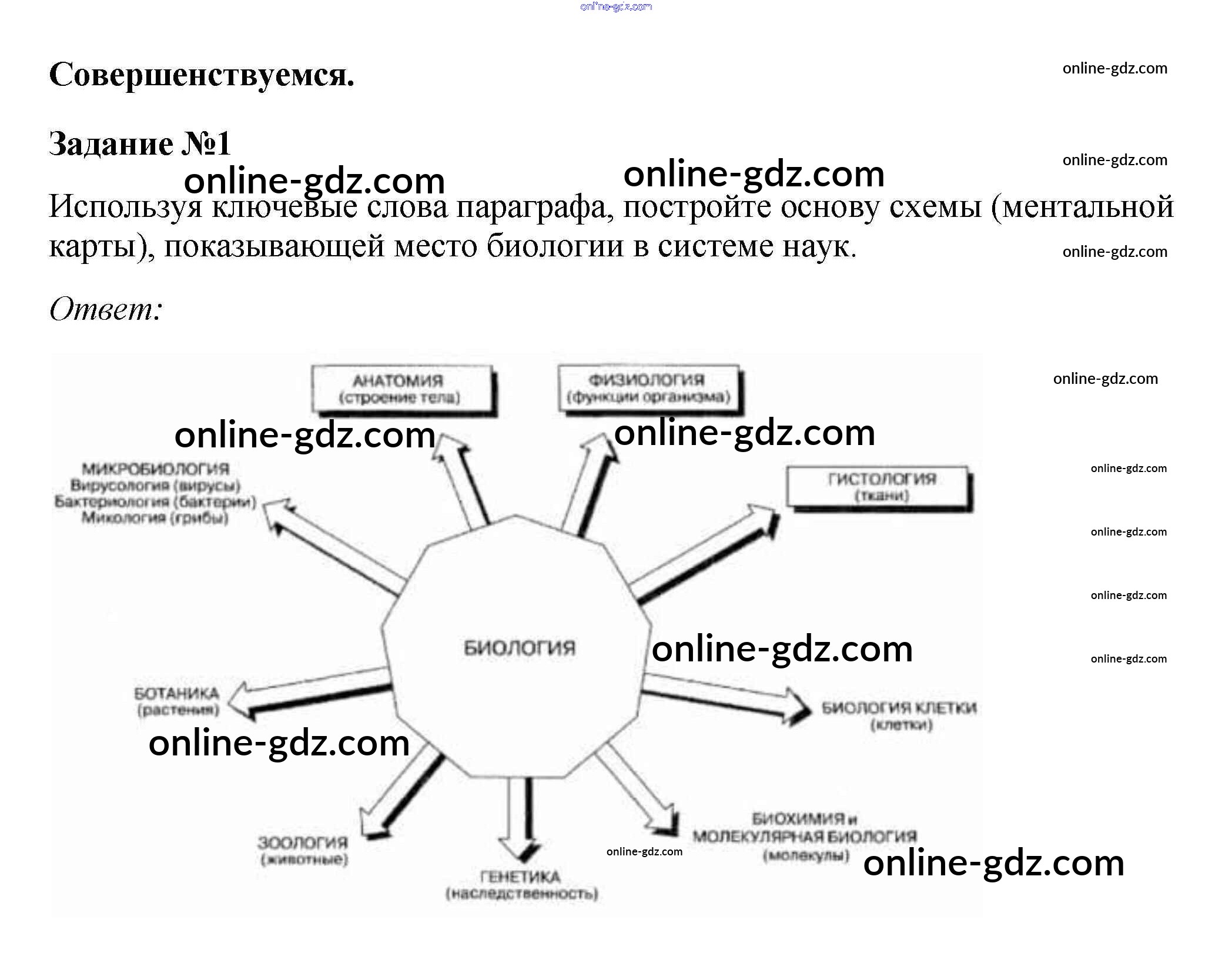 Готовые домашние задания по Биологии за 10 класс Учебник Пасечник, Каменский Линия жизни 2018 - Совершенствуемся §1. Биология в системе наук 1