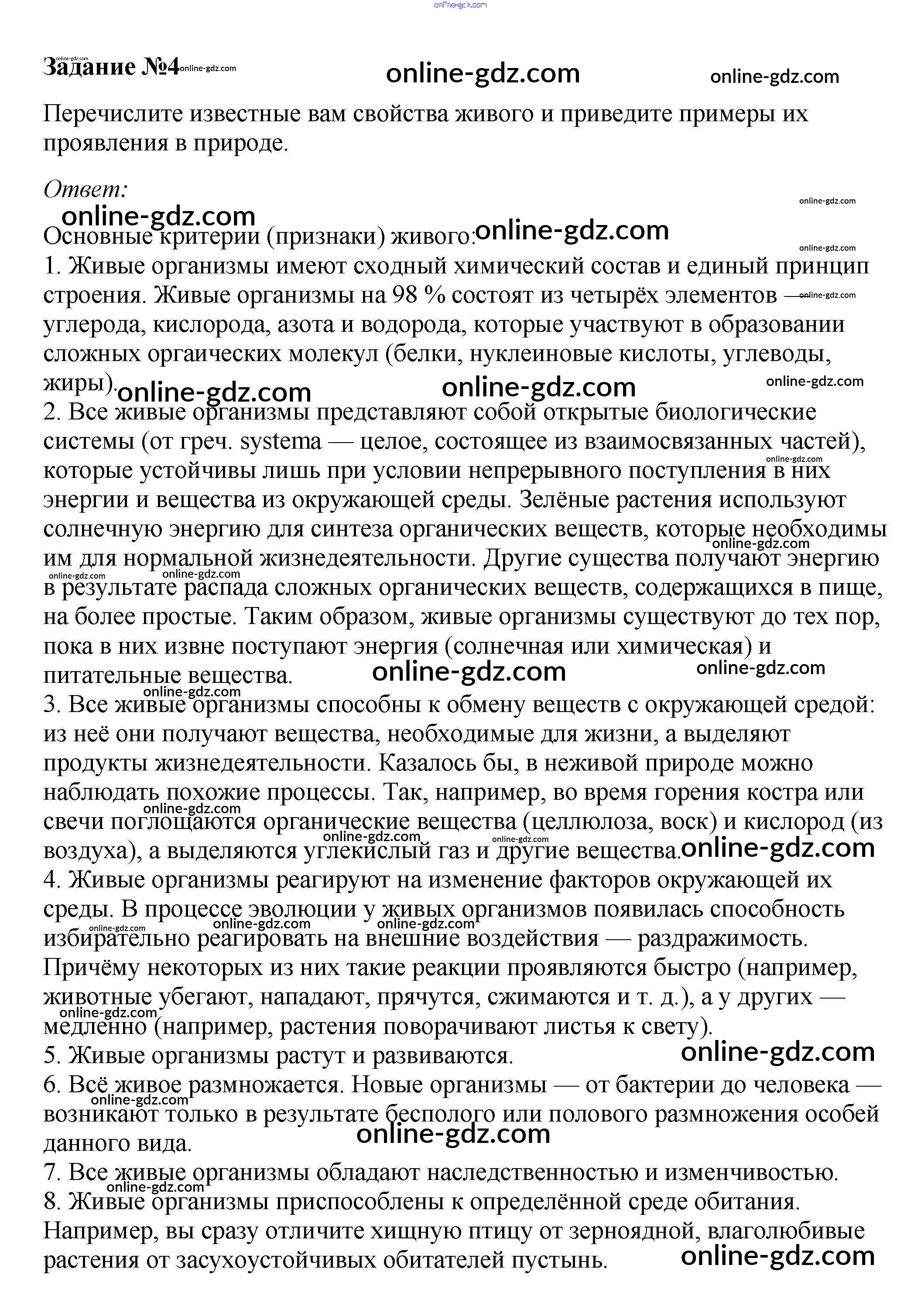 Готовые домашние задания по Биологии за 10 класс Учебник Пасечник, Каменский Линия жизни 2018 - Тренируемся §2. Объект изучения биологии 4