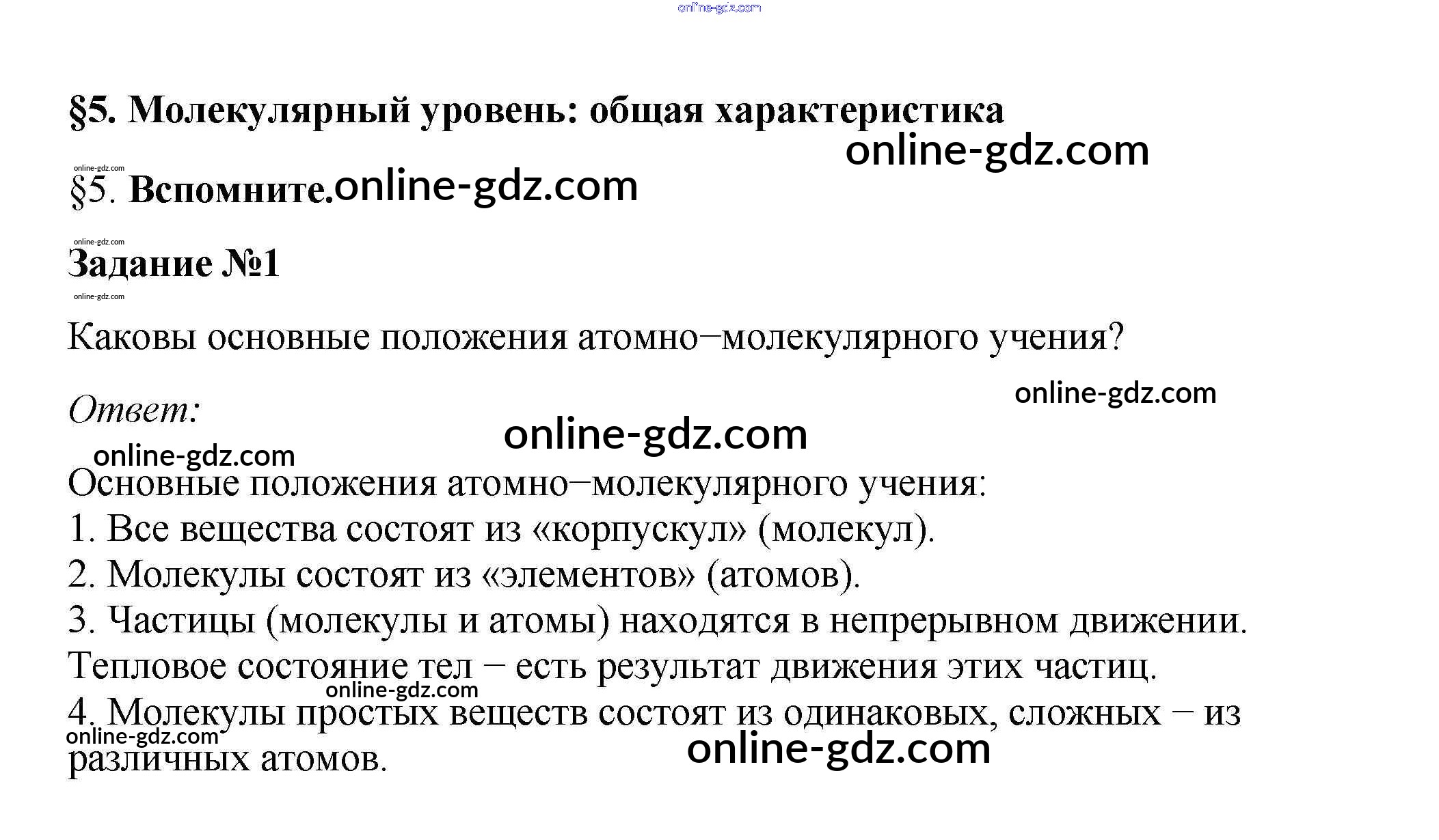 Готовые домашние задания по Биологии за 10 класс Учебник Пасечник, Каменский Линия жизни 2018 - Вспомните §5. Молекулярный уровень: общая характеристика 1