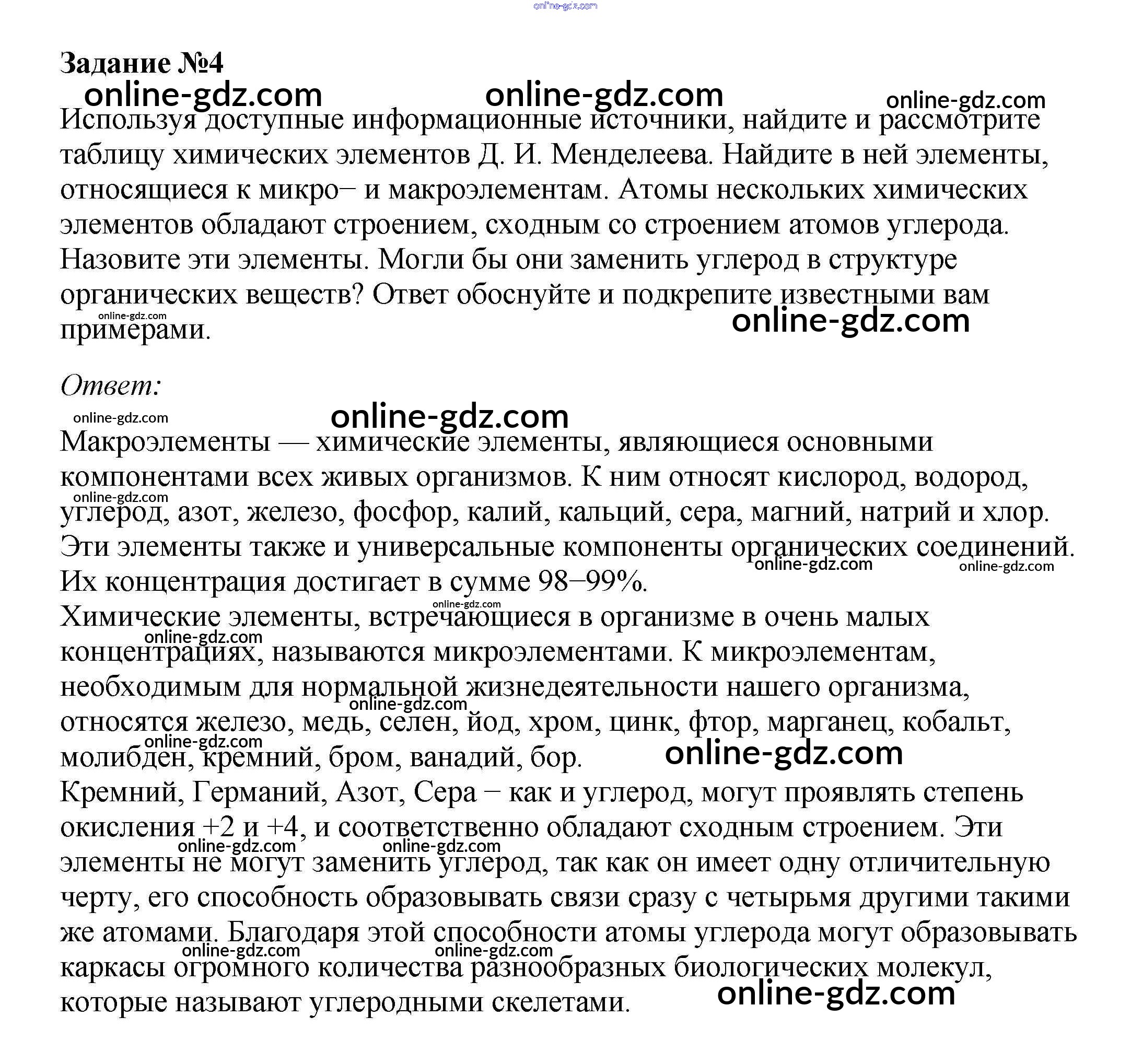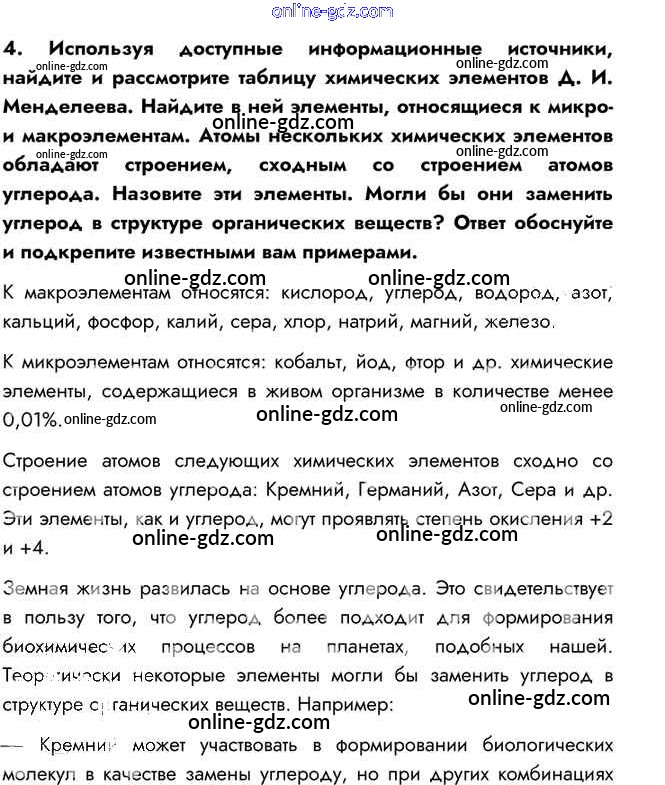 Готовые домашние задания по Биологии за 10 класс Учебник Пасечник, Каменский Линия жизни 2018 - Совершенствуемся §5. Молекулярный уровень: общая характеристика 4
