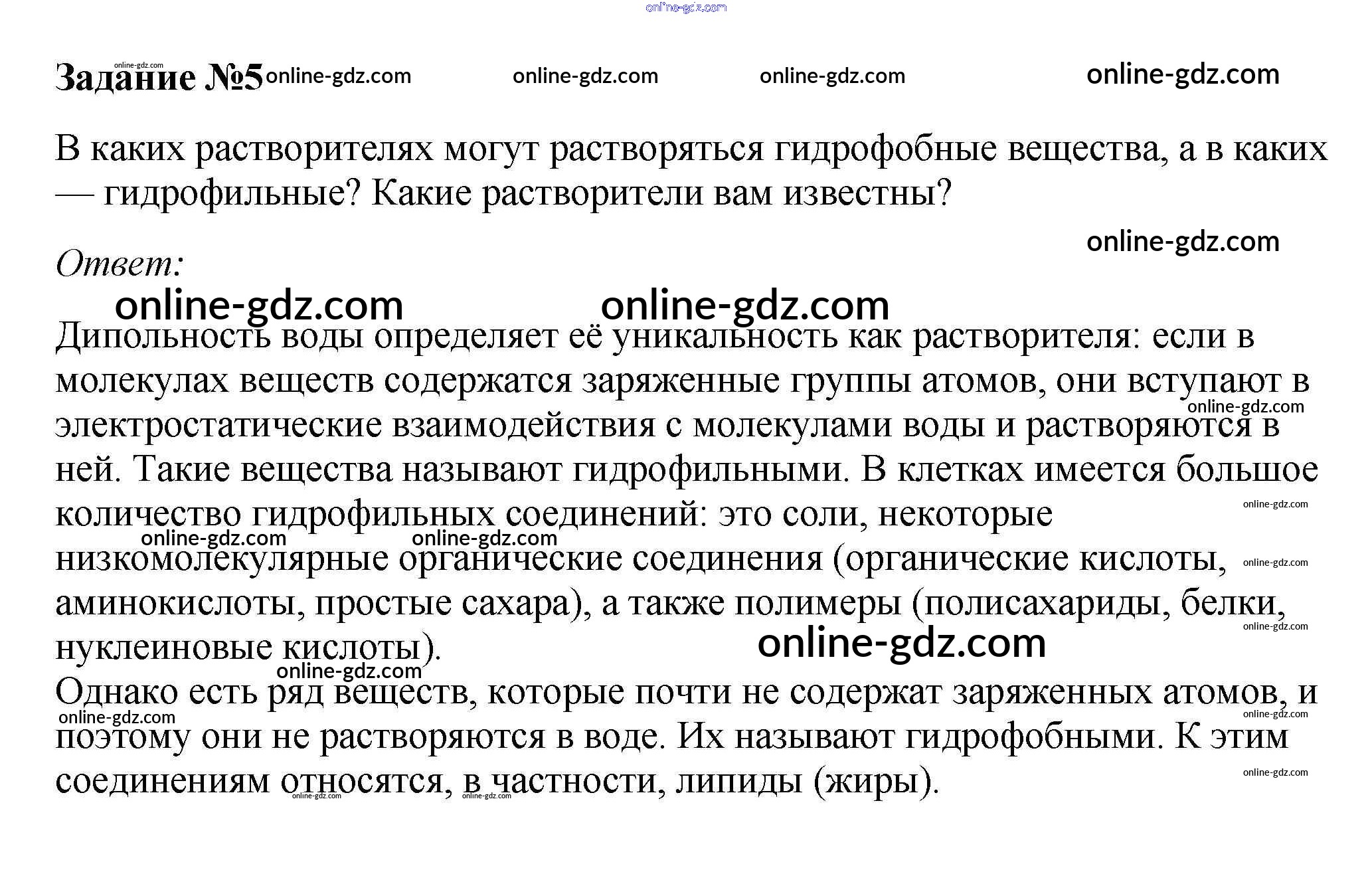 Готовые домашние задания по Биологии за 10 класс Учебник Пасечник, Каменский Линия жизни 2018 - Тренируемся §6. Неорганические вещества: вода, соли 5