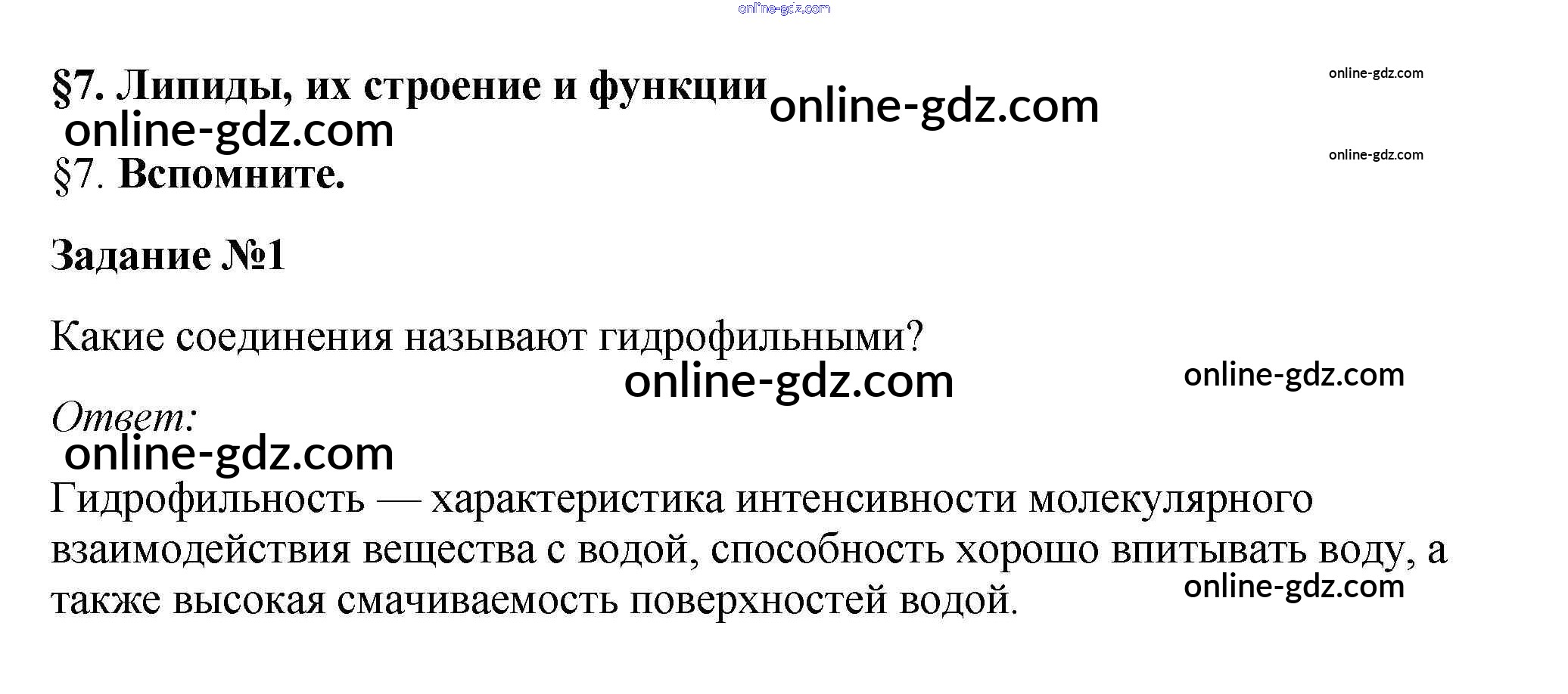 Готовые домашние задания по Биологии за 10 класс Учебник Пасечник, Каменский Линия жизни 2018 - Вспомните §7. Липиды, их строение и функции 1