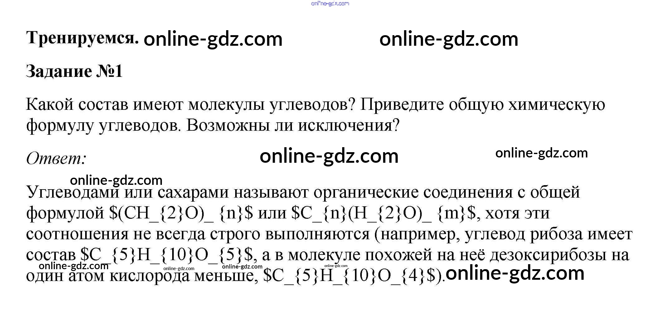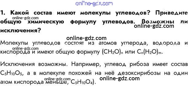 Готовые домашние задания по Биологии за 10 класс Учебник Пасечник, Каменский Линия жизни 2018 - Тренируемся §8. Углеводы, их строение и функции 1