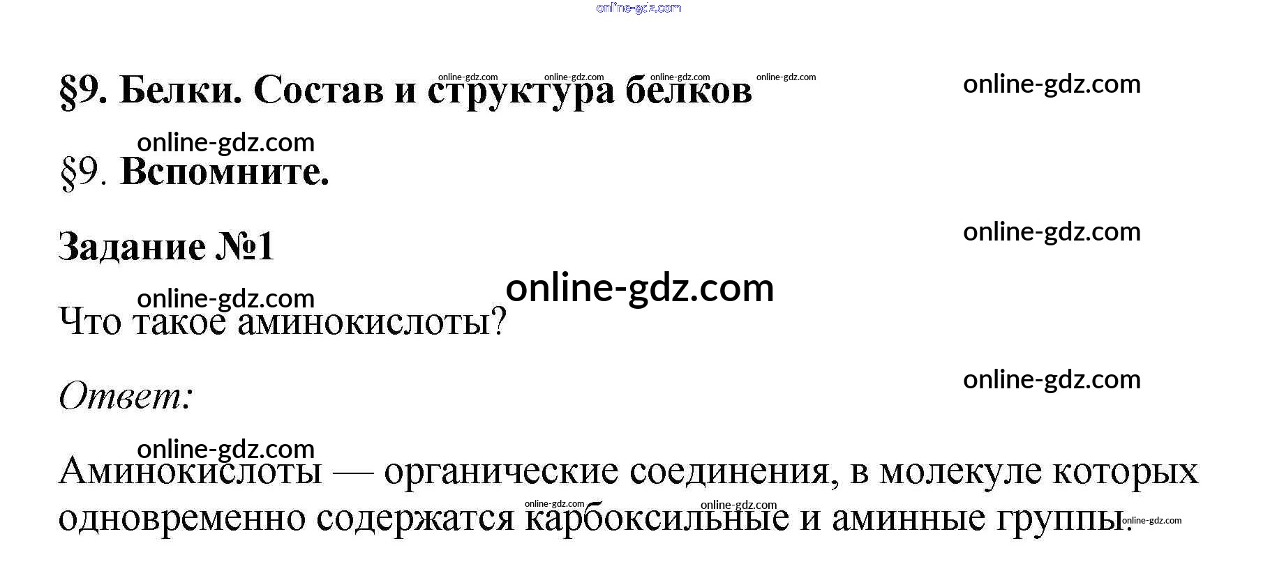 Готовые домашние задания по Биологии за 10 класс Учебник Пасечник, Каменский Линия жизни 2018 - Вспомните §9. Белки. Состав и структура белков 1
