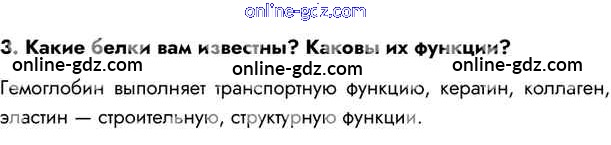Готовые домашние задания по Биологии за 10 класс Учебник Пасечник, Каменский Линия жизни 2018 - Вспомните §10. Белки. Функции белков 3