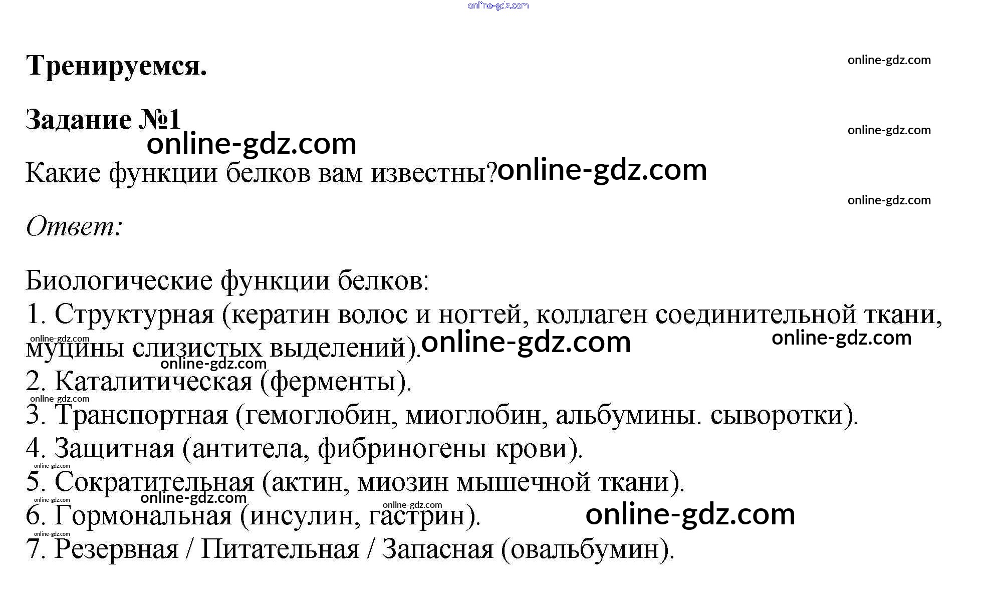 Готовые домашние задания по Биологии за 10 класс Учебник Пасечник, Каменский Линия жизни 2018 - Тренируемся §10. Белки. Функции белков 1