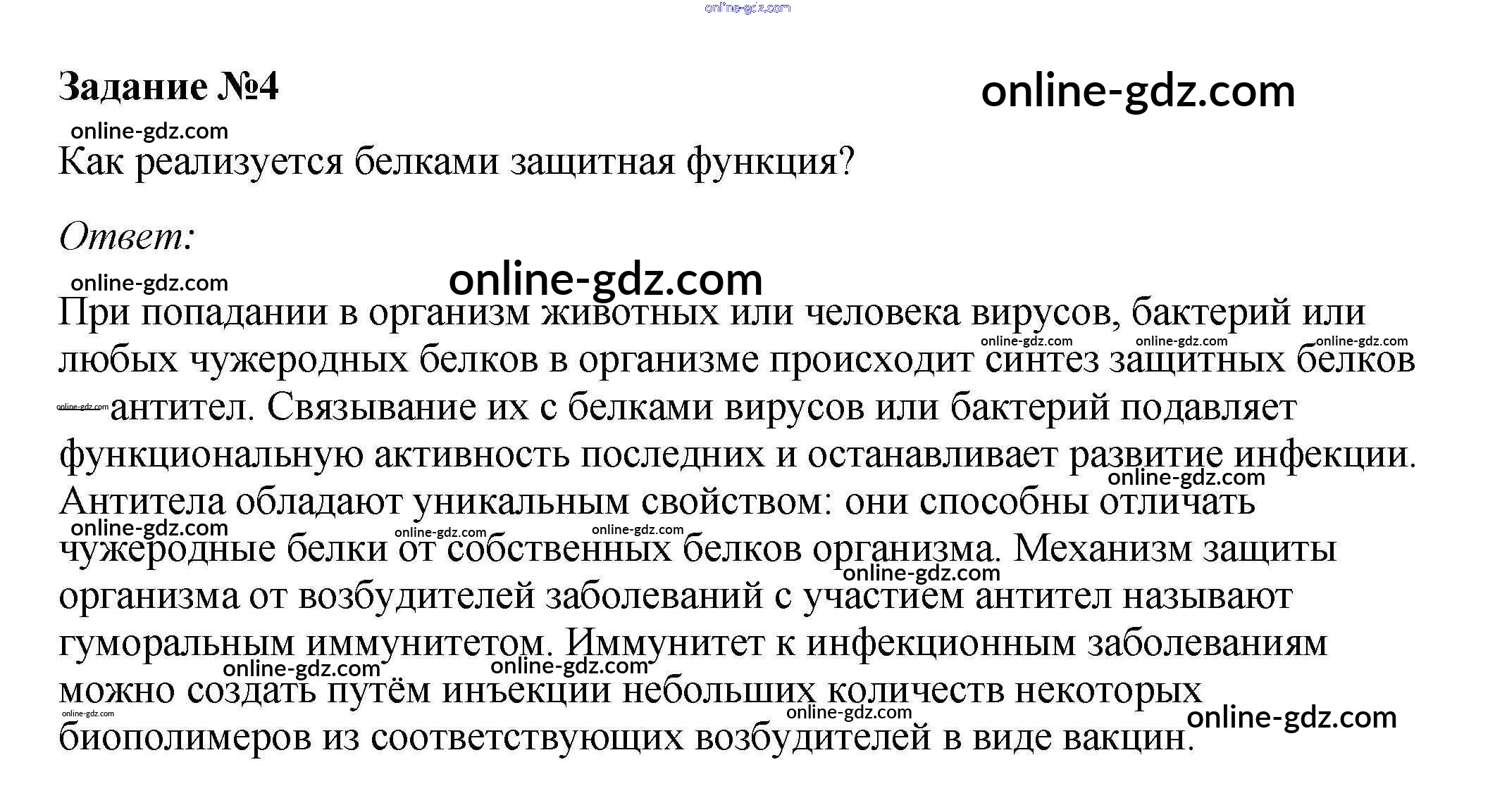 Готовые домашние задания по Биологии за 10 класс Учебник Пасечник, Каменский Линия жизни 2018 - Тренируемся §10. Белки. Функции белков 4