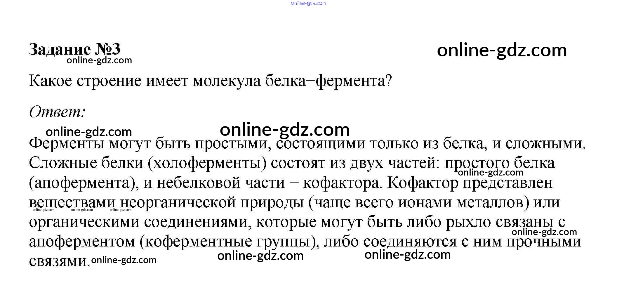 Готовые домашние задания по Биологии за 10 класс Учебник Пасечник, Каменский Линия жизни 2018 - Тренируемся §11. Ферменты — биологические катализаторы 3
