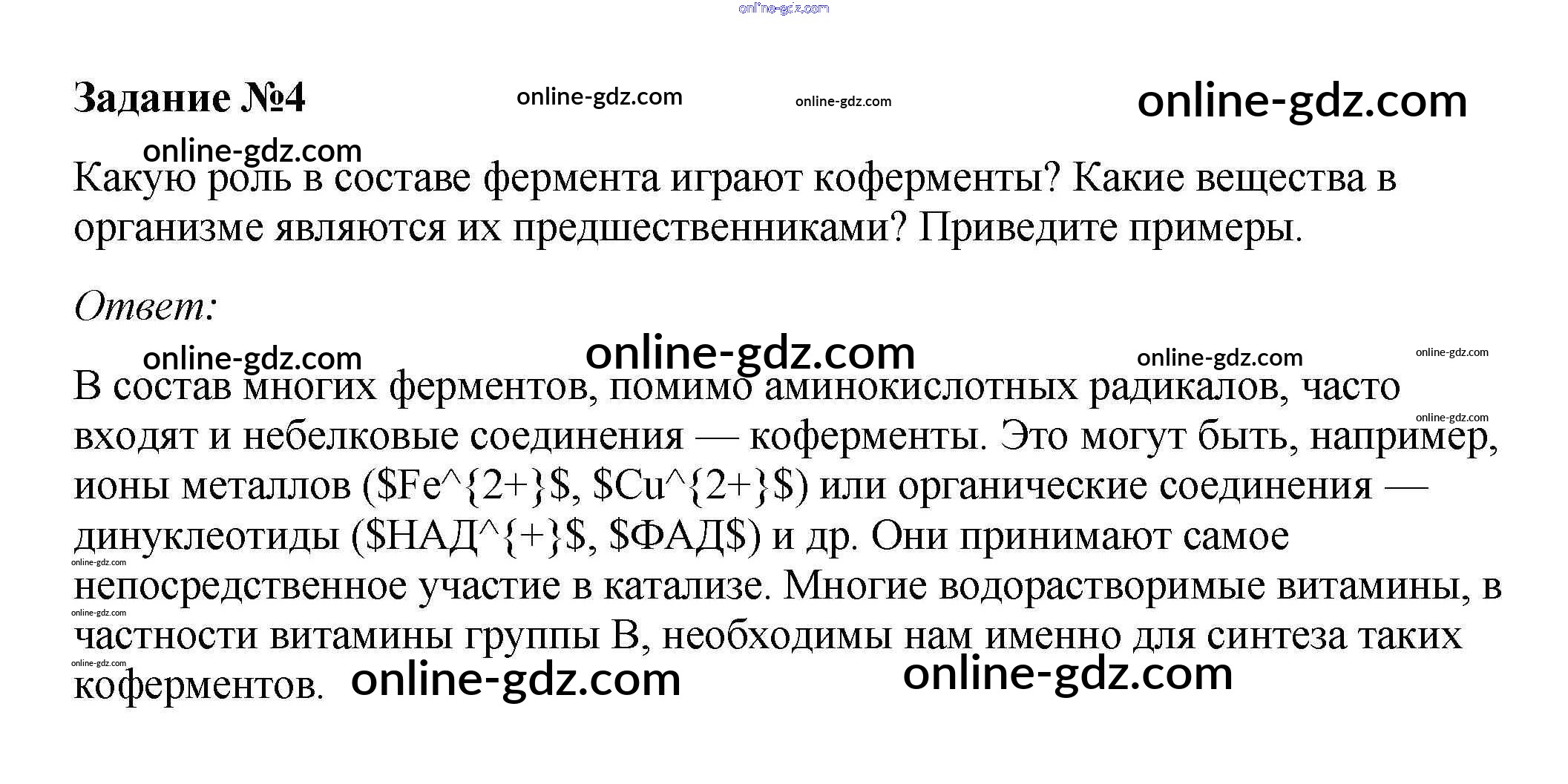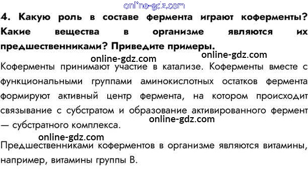 Готовые домашние задания по Биологии за 10 класс Учебник Пасечник, Каменский Линия жизни 2018 - Тренируемся §11. Ферменты — биологические катализаторы 4