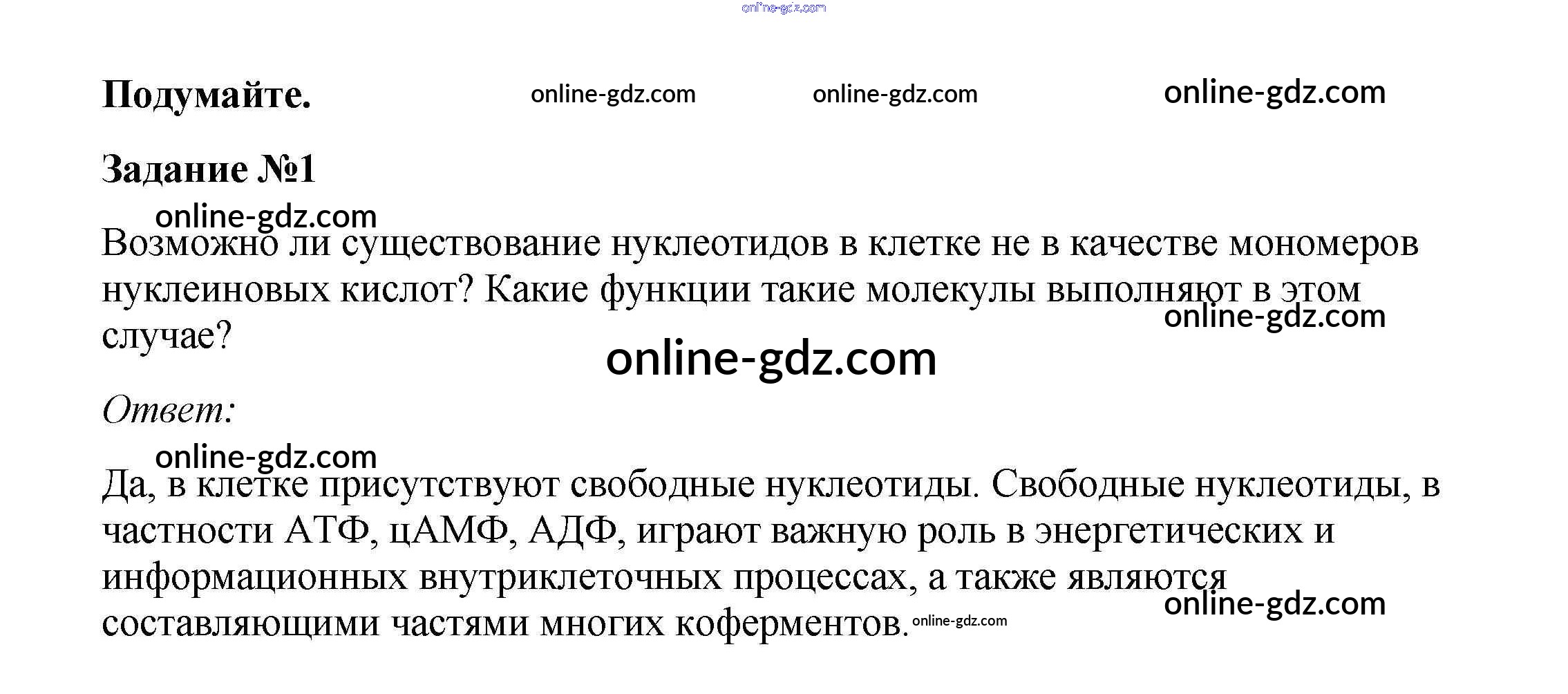 Готовые домашние задания по Биологии за 10 класс Учебник Пасечник, Каменский Линия жизни 2018 - Подумайте §12. Нуклеиновые кислоты: ДНК и РНК 1
