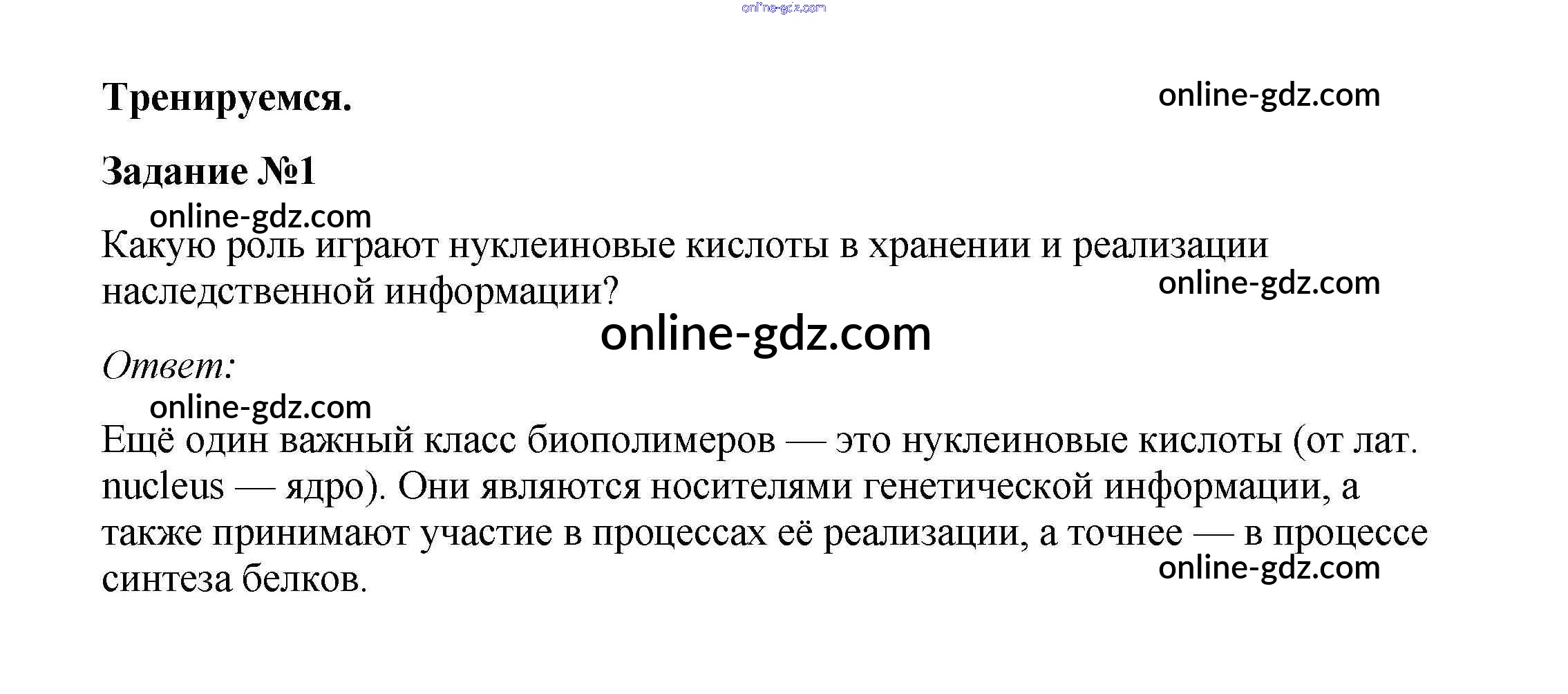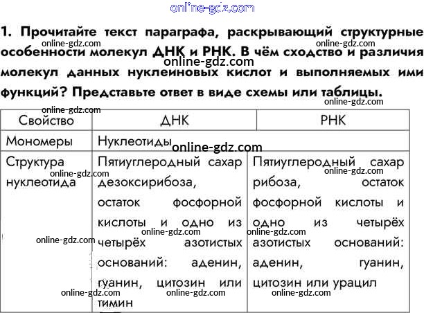 Готовые домашние задания по Биологии за 10 класс Учебник Пасечник, Каменский Линия жизни 2018 - Совершенствуемся §12. Нуклеиновые кислоты: ДНК и РНК 1