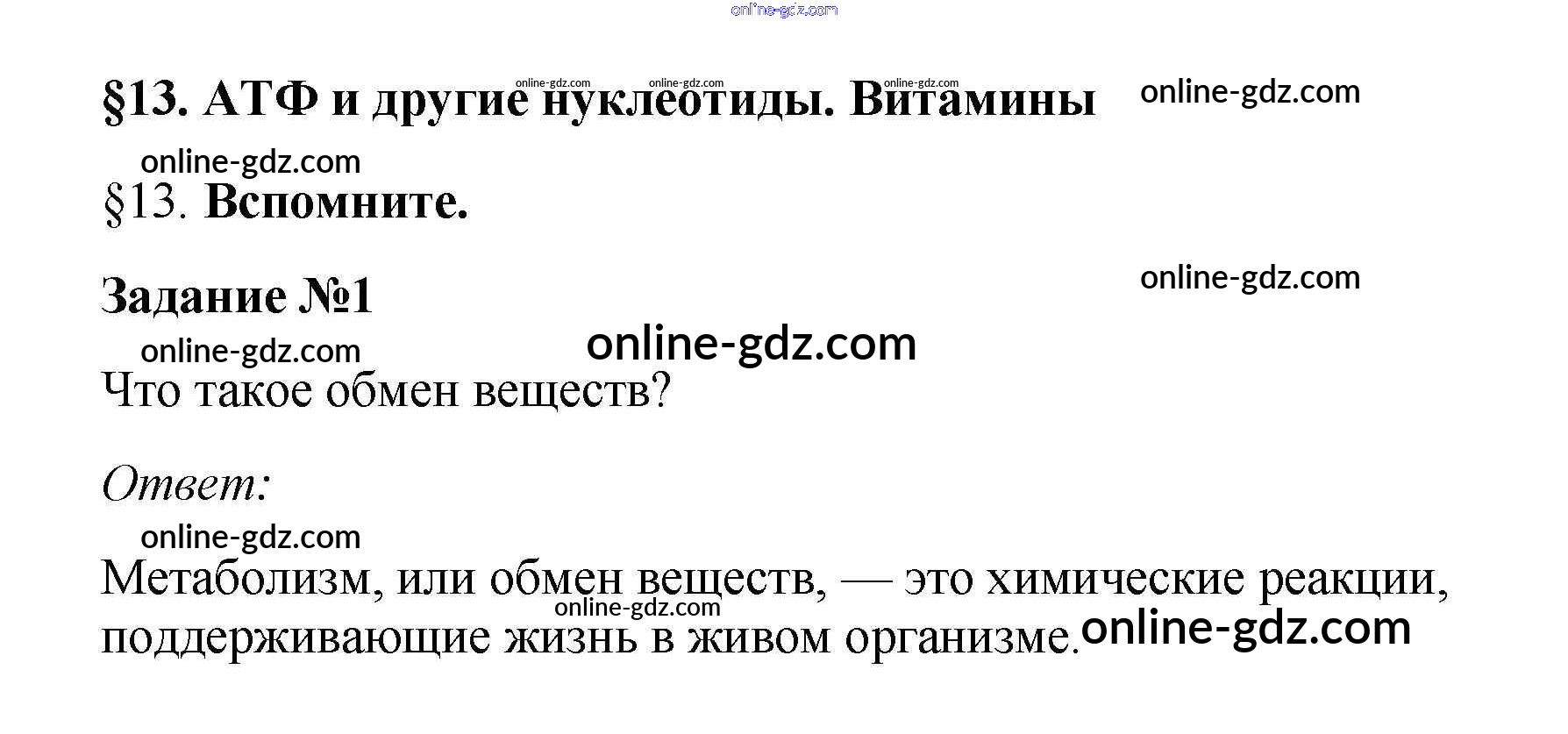 Готовые домашние задания по Биологии за 10 класс Учебник Пасечник, Каменский Линия жизни 2018 - Вспомните §13. АТФ и другие нуклеотиды. Витамины 1