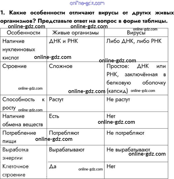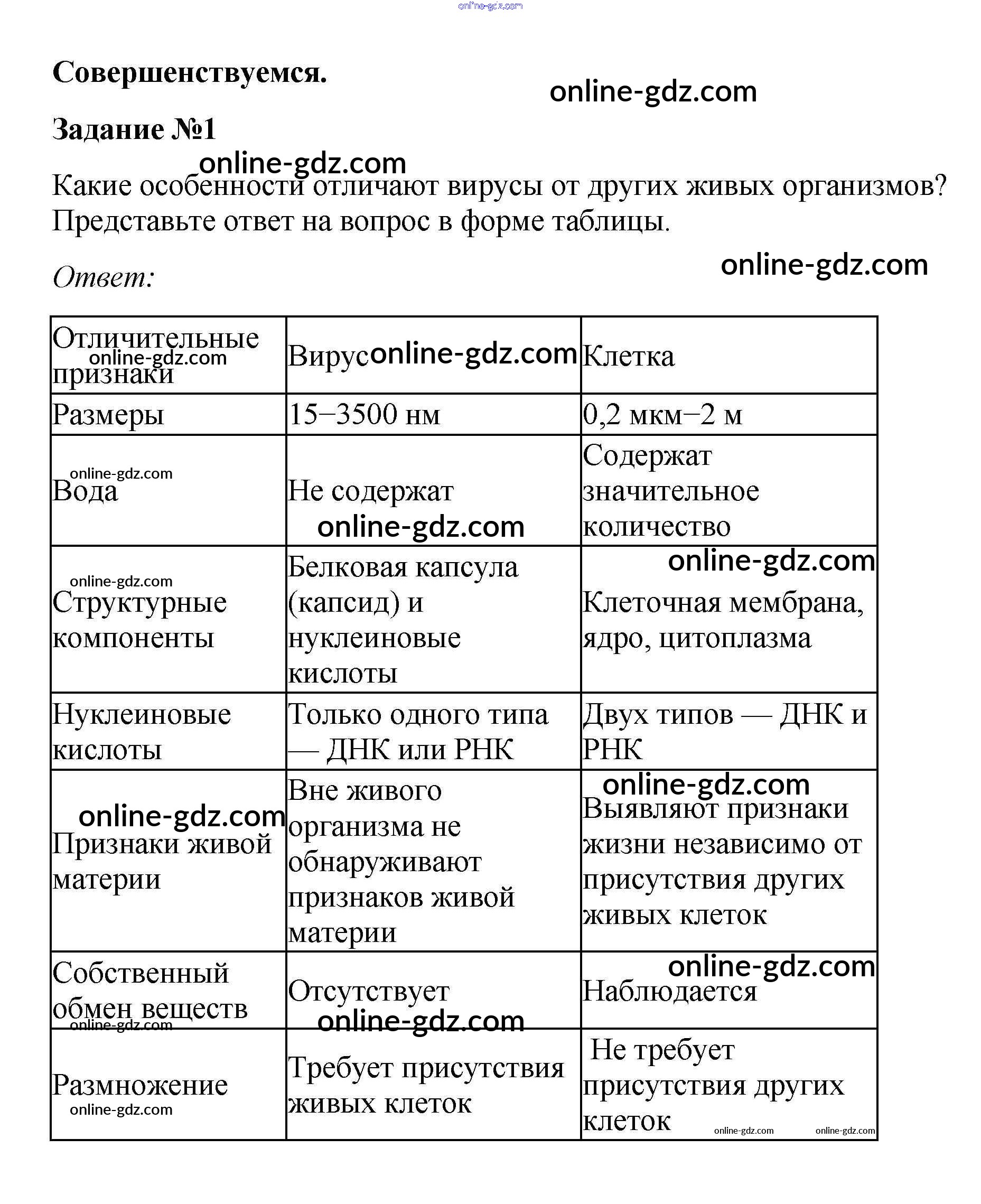 Готовые домашние задания по Биологии за 10 класс Учебник Пасечник, Каменский Линия жизни 2018 - Совершенствуемся §14. Вирусы — неклеточная форма жизни 1