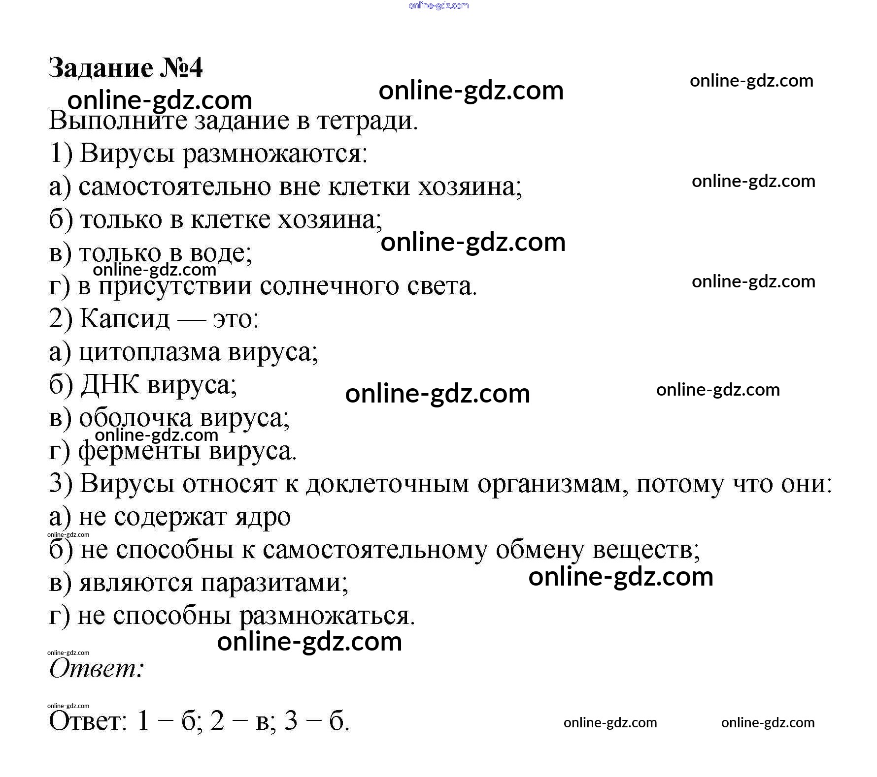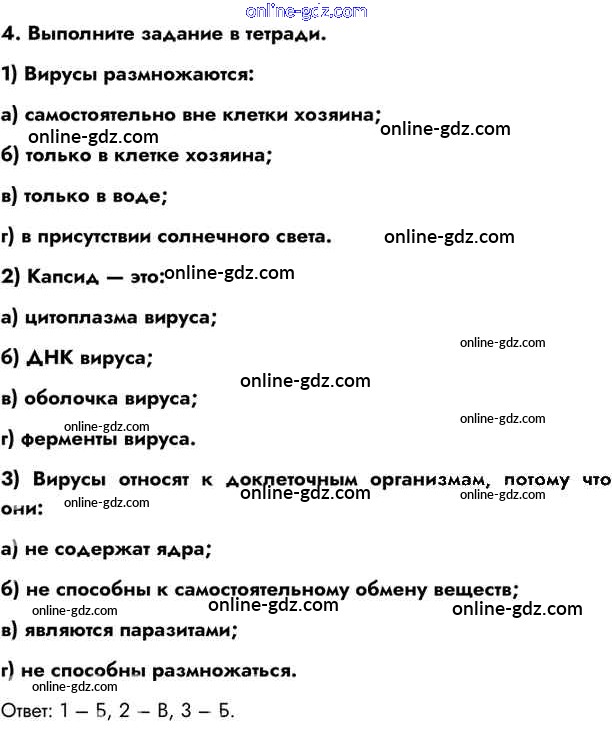 Готовые домашние задания по Биологии за 10 класс Учебник Пасечник, Каменский Линия жизни 2018 - Совершенствуемся §14. Вирусы — неклеточная форма жизни 4