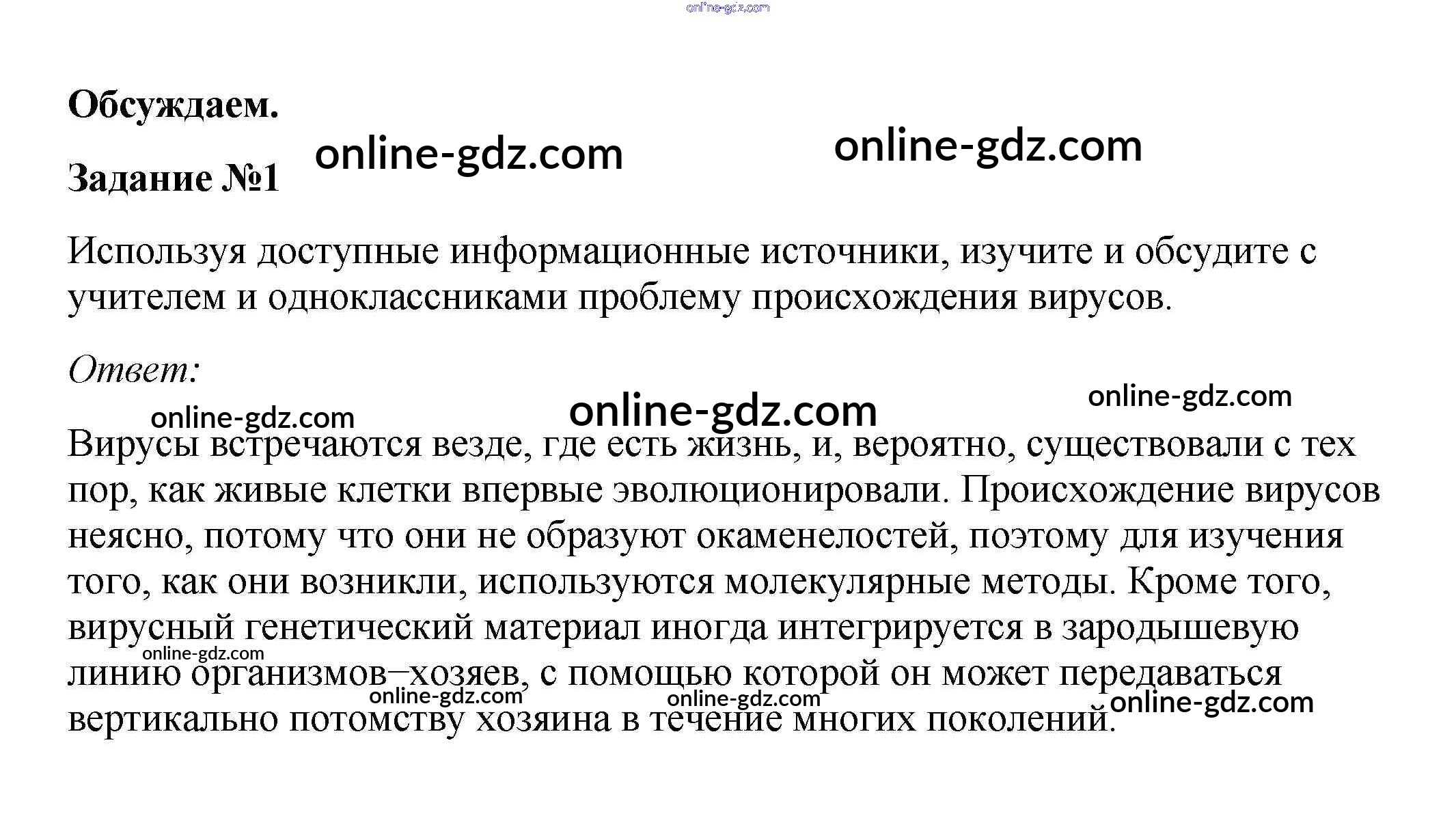 Готовые домашние задания по Биологии за 10 класс Учебник Пасечник, Каменский Линия жизни 2018 - Обсуждаем §14. Вирусы — неклеточная форма жизни 1