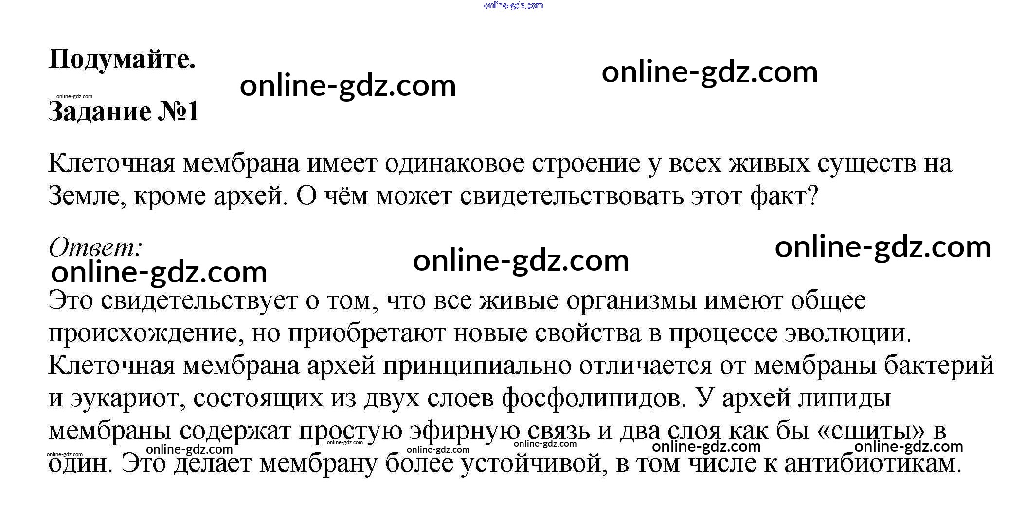 Готовые домашние задания по Биологии за 10 класс Учебник Пасечник, Каменский Линия жизни 2018 - Подумайте §16. Строение клетки. Клеточная мембрана. Цитоплазма 1