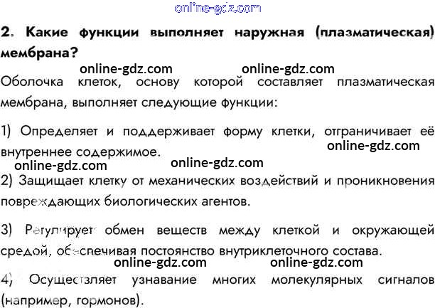 Готовые домашние задания по Биологии за 10 класс Учебник Пасечник, Каменский Линия жизни 2018 - Тренируемся §16. Строение клетки. Клеточная мембрана. Цитоплазма 2