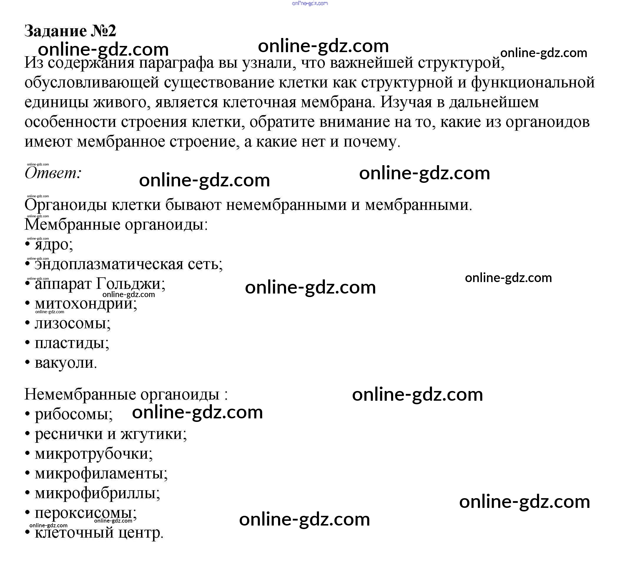 Готовые домашние задания по Биологии за 10 класс Учебник Пасечник, Каменский Линия жизни 2018 - Совершенствуемся §16. Строение клетки. Клеточная мембрана. Цитоплазма 2