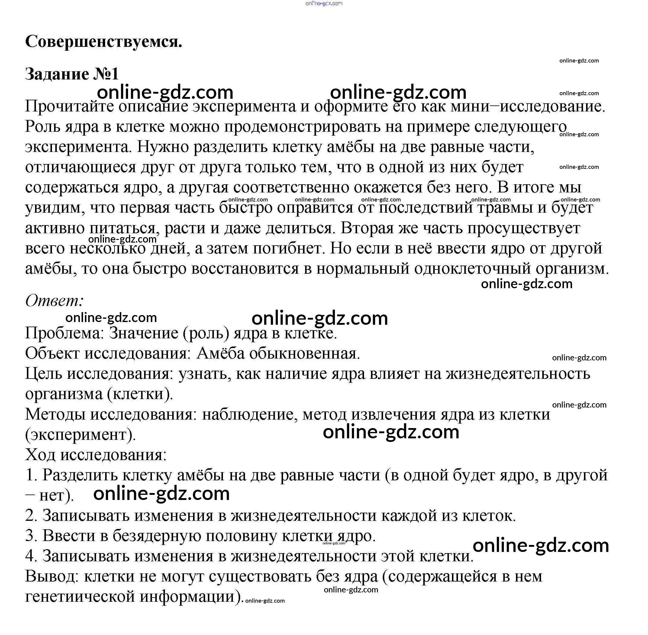 Готовые домашние задания по Биологии за 10 класс Учебник Пасечник, Каменский Линия жизни 2018 - Совершенствуемся §17. Рибосомы. Ядро. Эндоплазматическая сеть 1